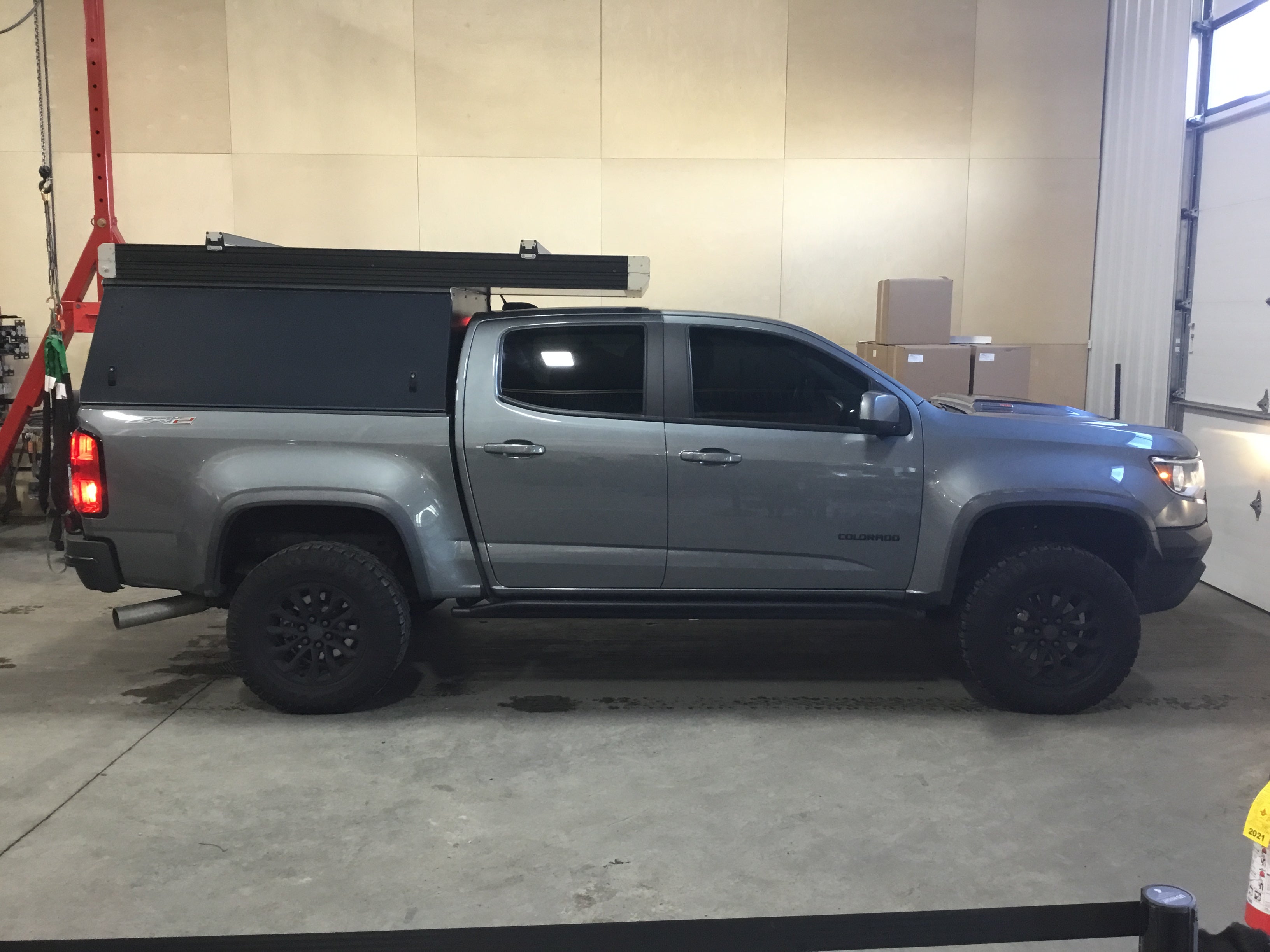 This 2019 Chevrolet Colorado is outfitted with a GFC Platform Camper with Destroyer Blue panels. Check out more build specs below.