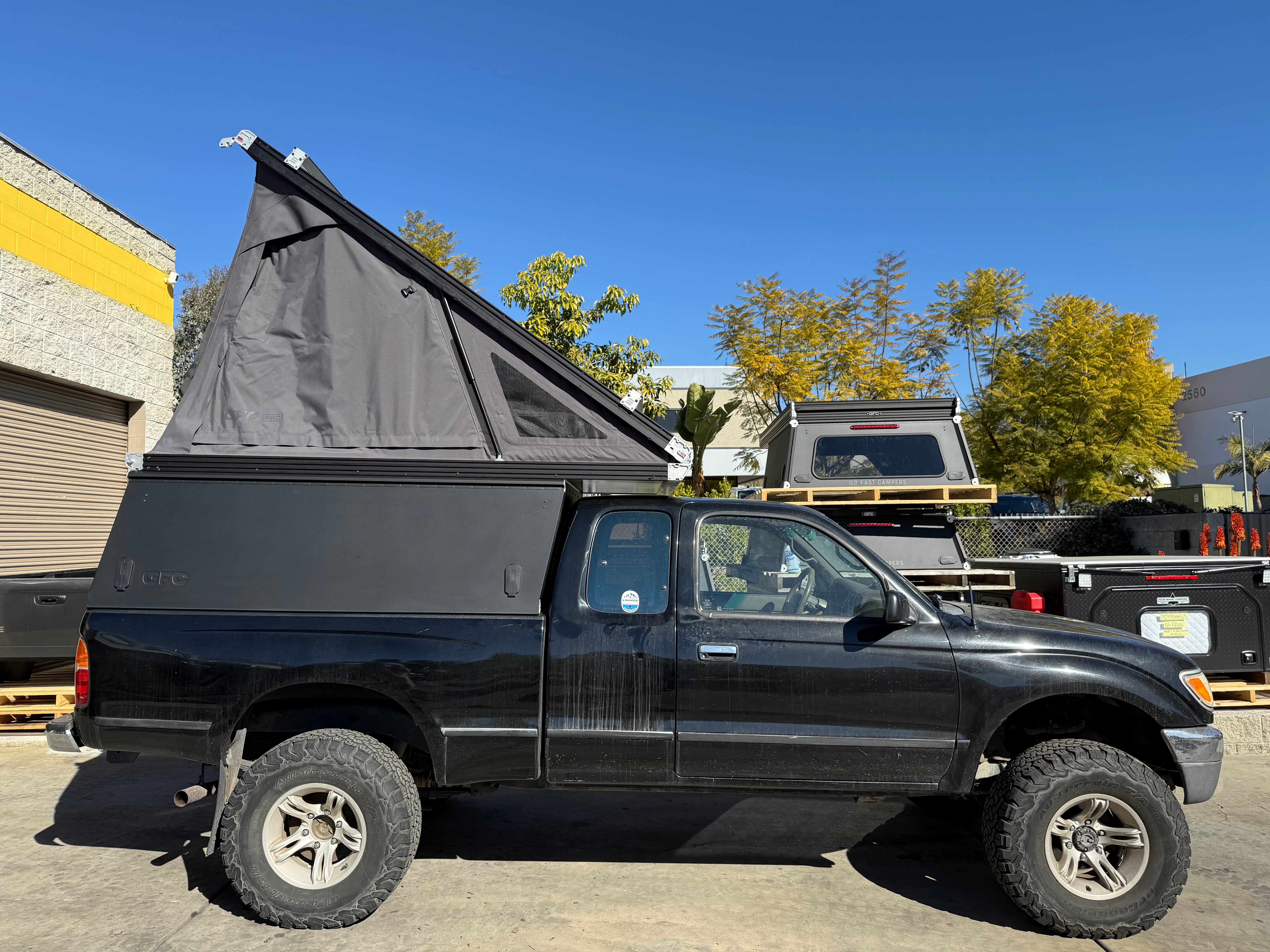 This 1996 Toyota Tacoma is outfitted with a GFC Platform Camper with Black panels and a Stone Grey tent. Check out more build specs below.