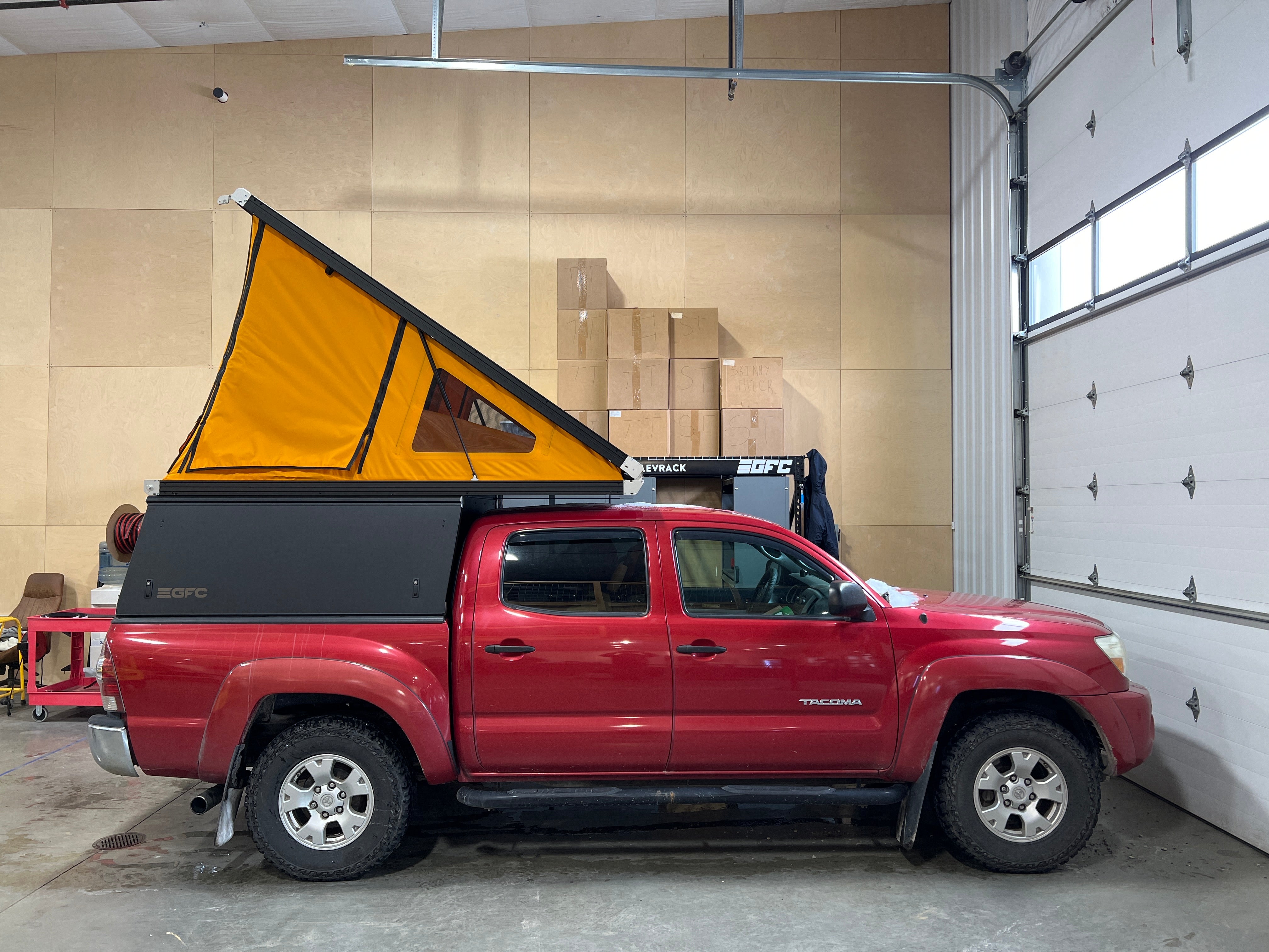 This 2011 Toyota Tacoma is outfitted with a GFC Platform Camper with Black panels and a Tangerine Dream tent. Check out more build specs below.