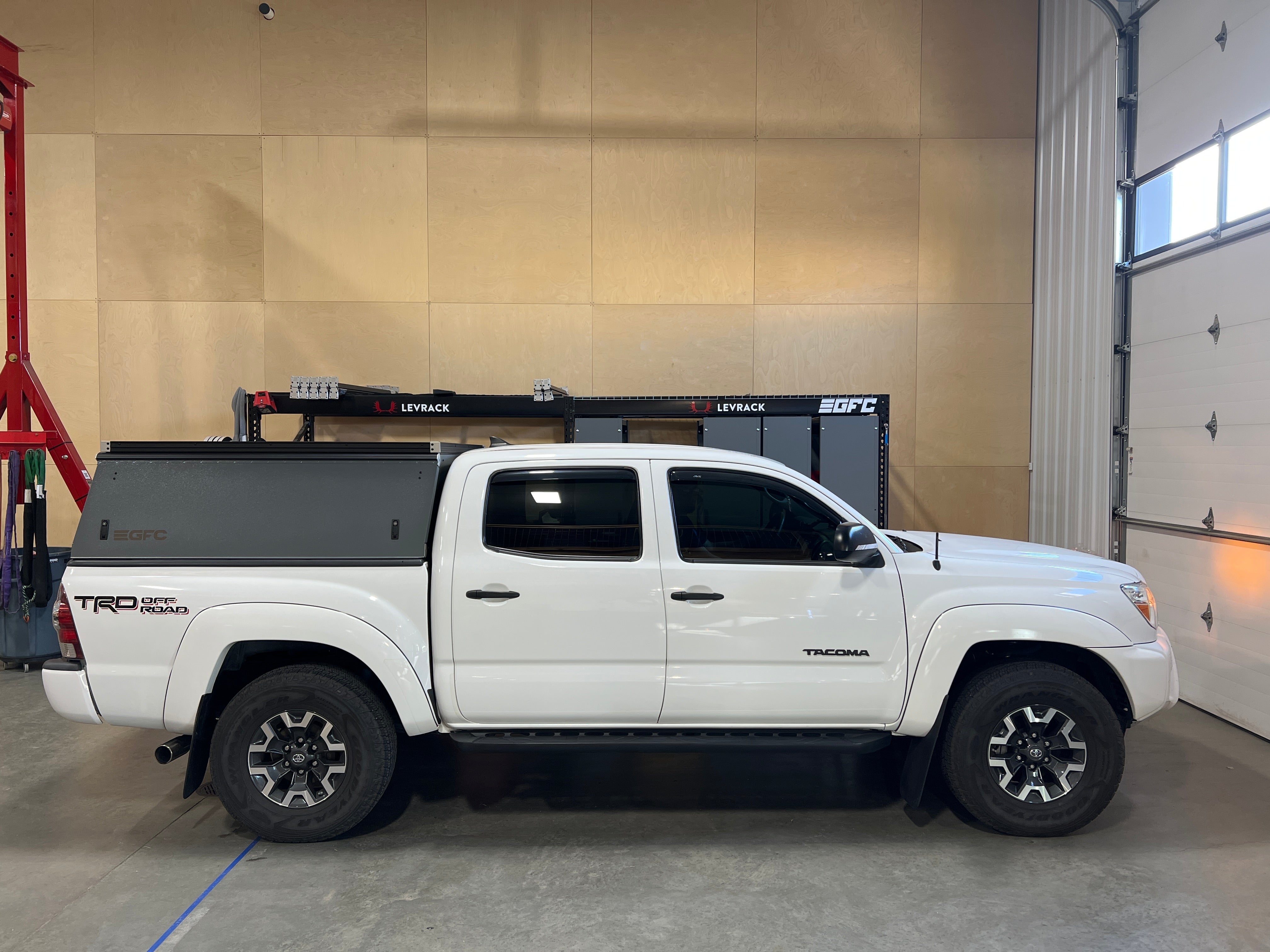 This 2011 Toyota Tacoma is outfitted with a GFC Platform Topper with Battleship Gray panels. Check out more build specs below.