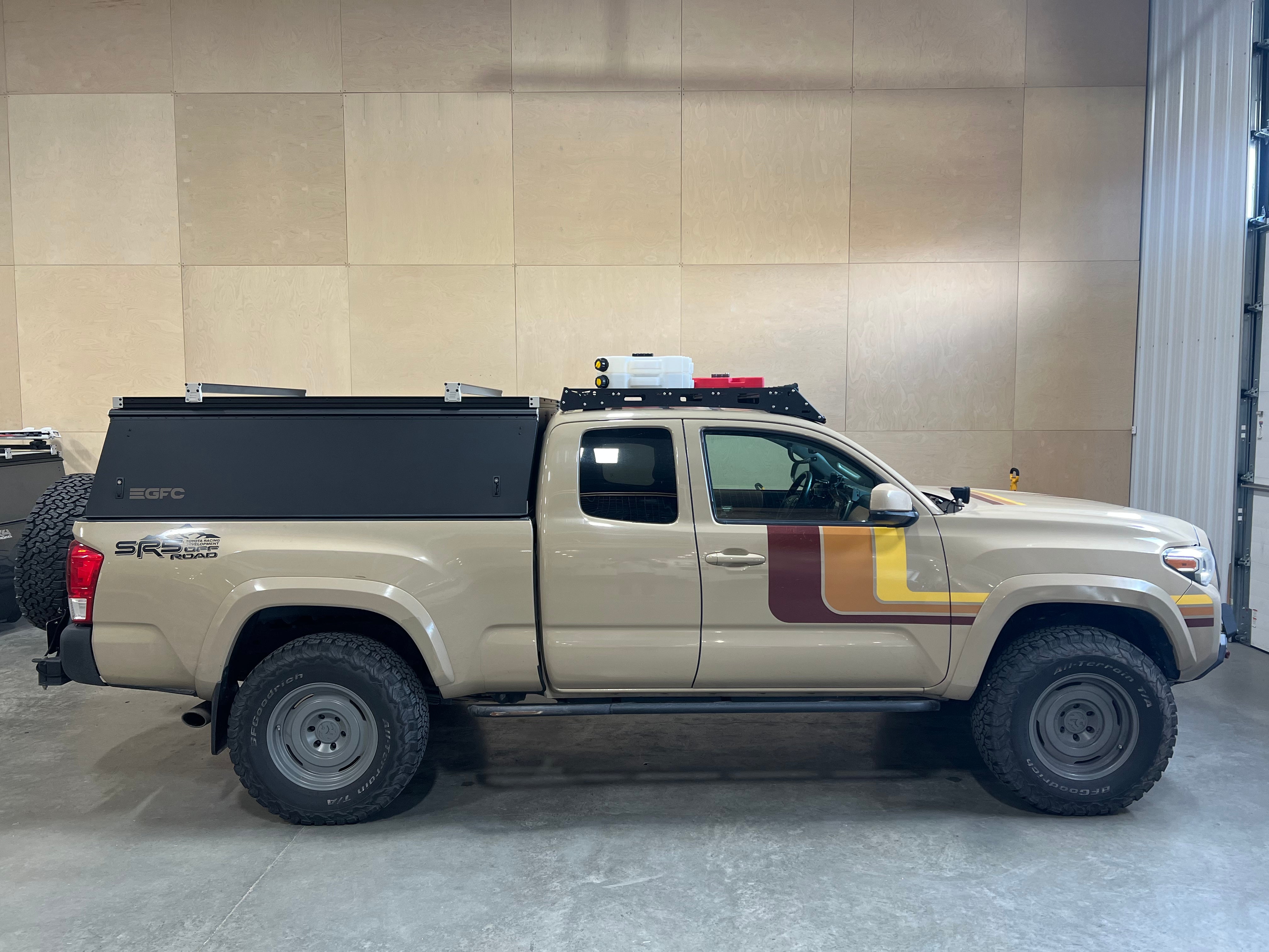 This 2017 Toyota Tacoma is outfitted with a GFC Platform Topper with Black panels. Check out more build specs below.
