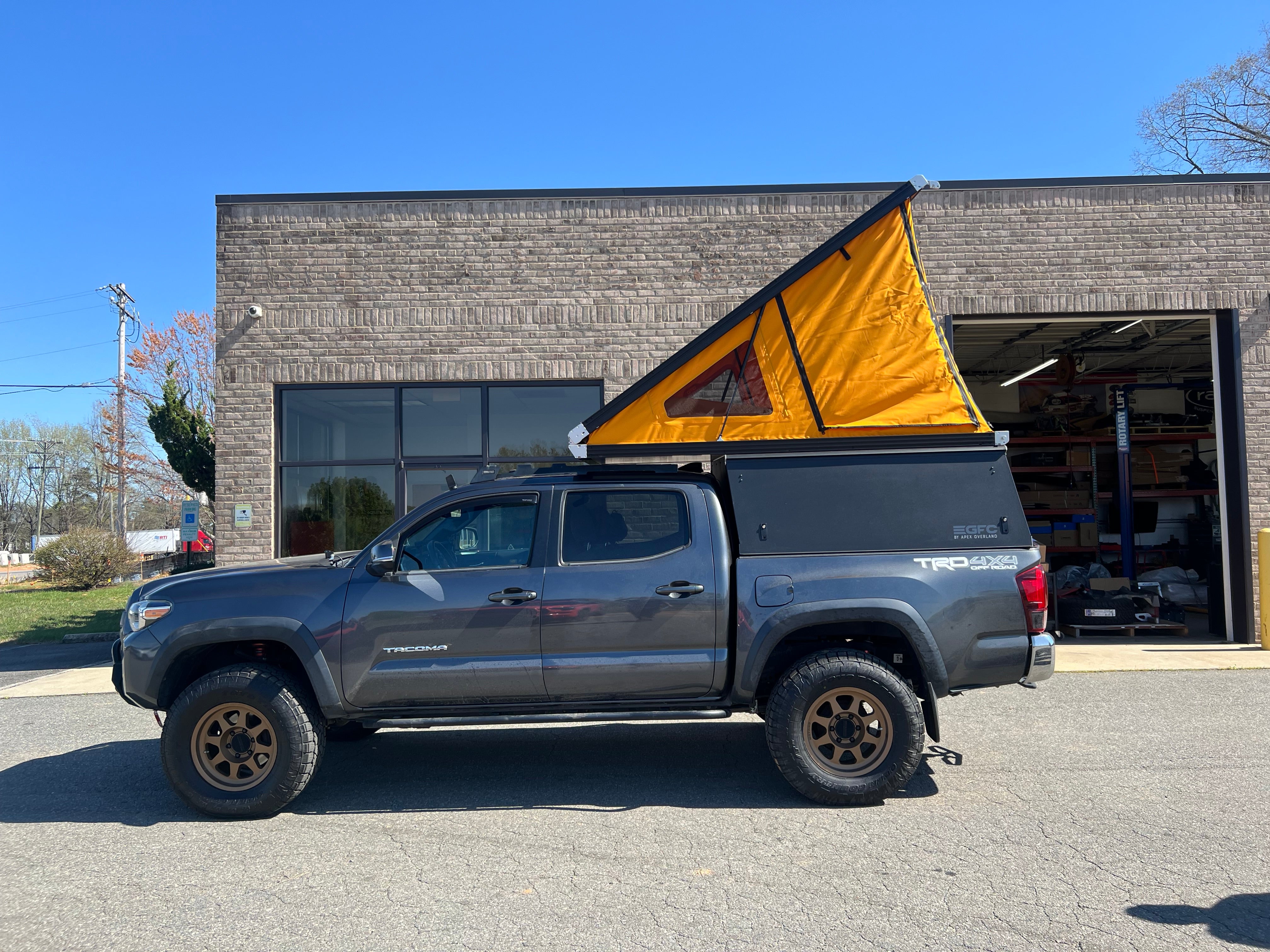 This 2018 Toyota Tacoma is outfitted with a GFC Platform Camper with Black panels and a Tangerine Dream tent. Check out more build specs below.