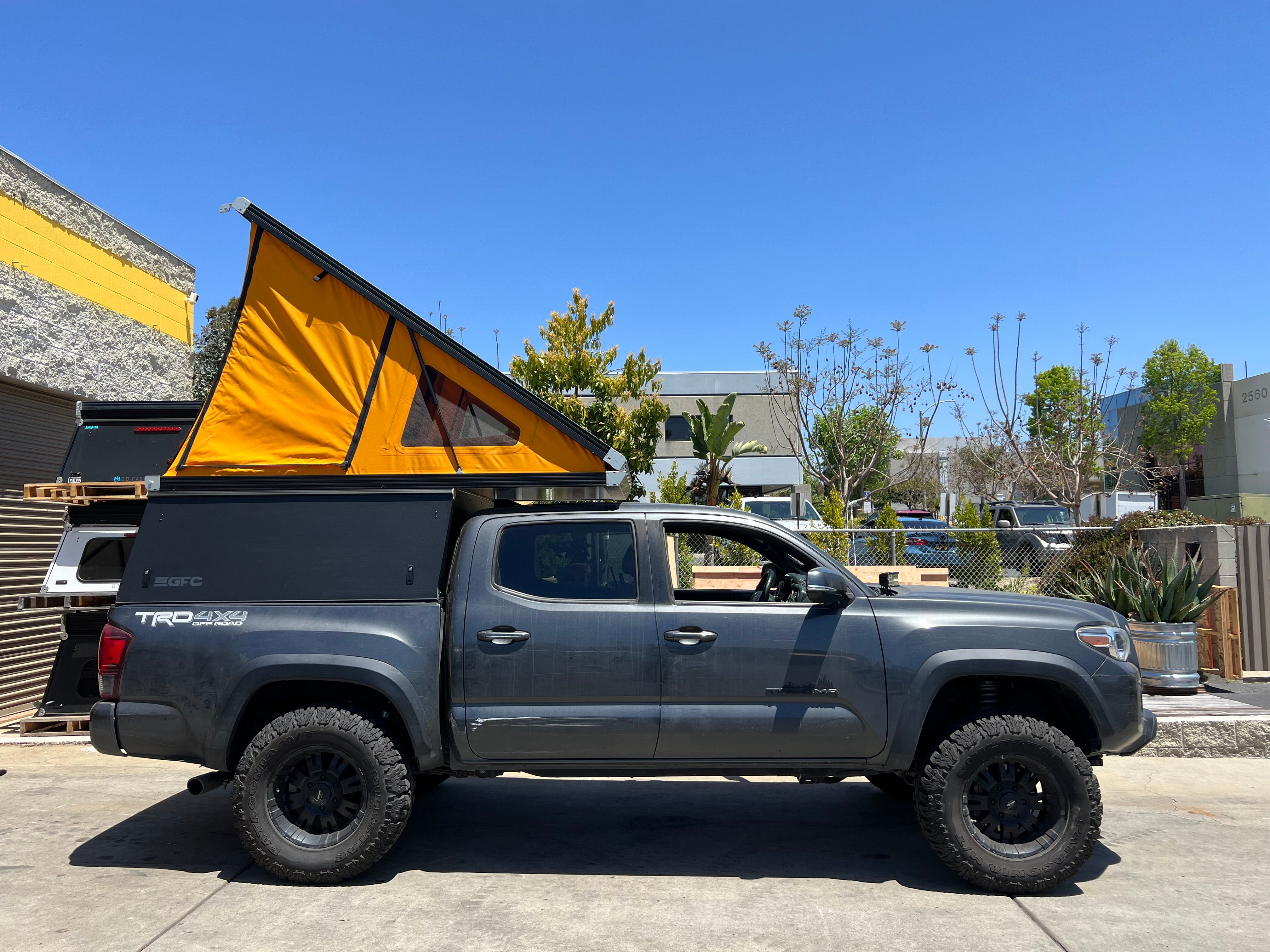 This 2019 Toyota Tacoma is outfitted with a GFC Platform Camper with Black panels and a Tangerine Dream tent. Check out more build specs below.