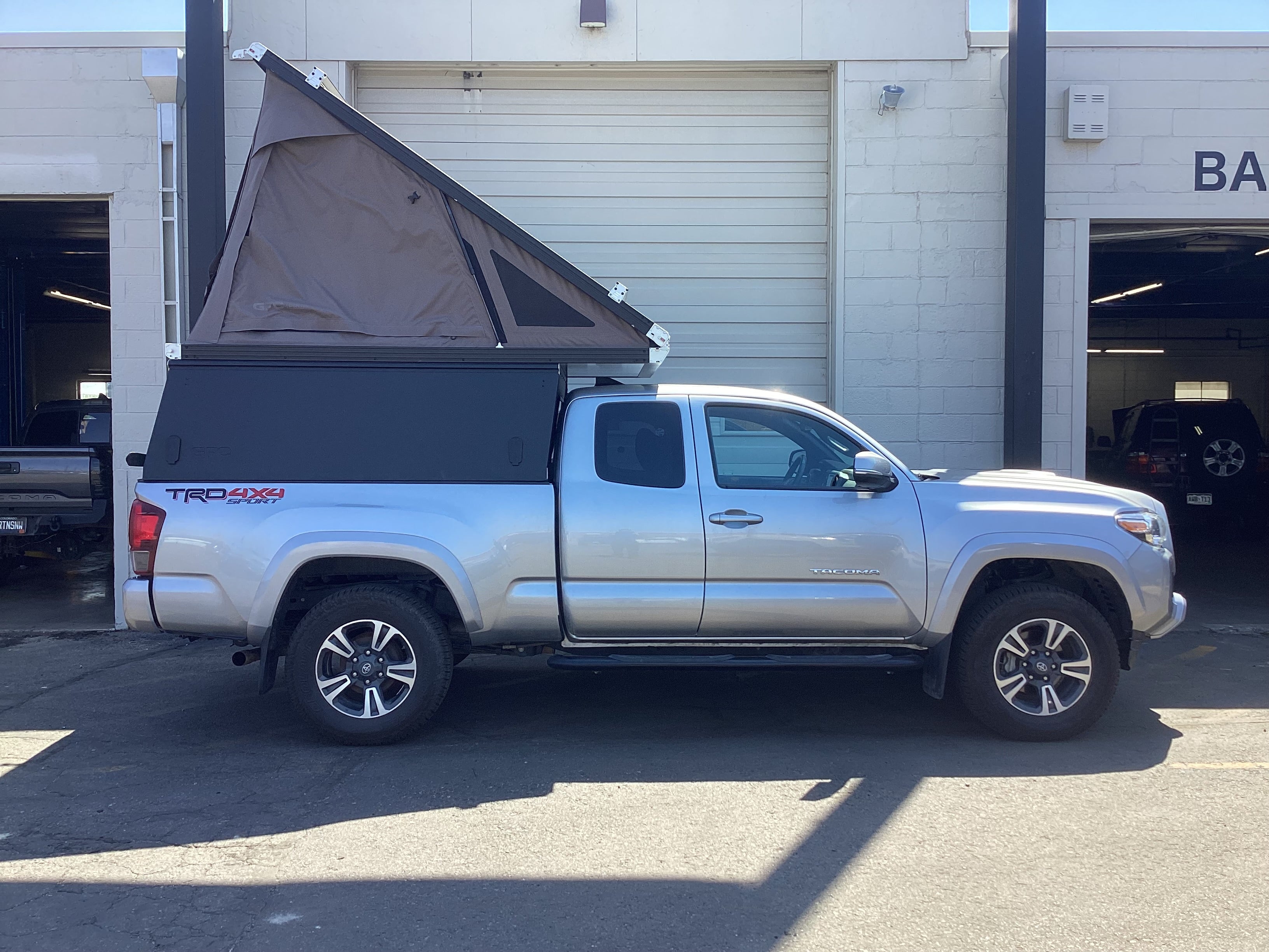This 2019 Toyota Tacoma is outfitted with a GFC Platform Camper with Black panels and a Stone Grey tent. Check out more build specs below.