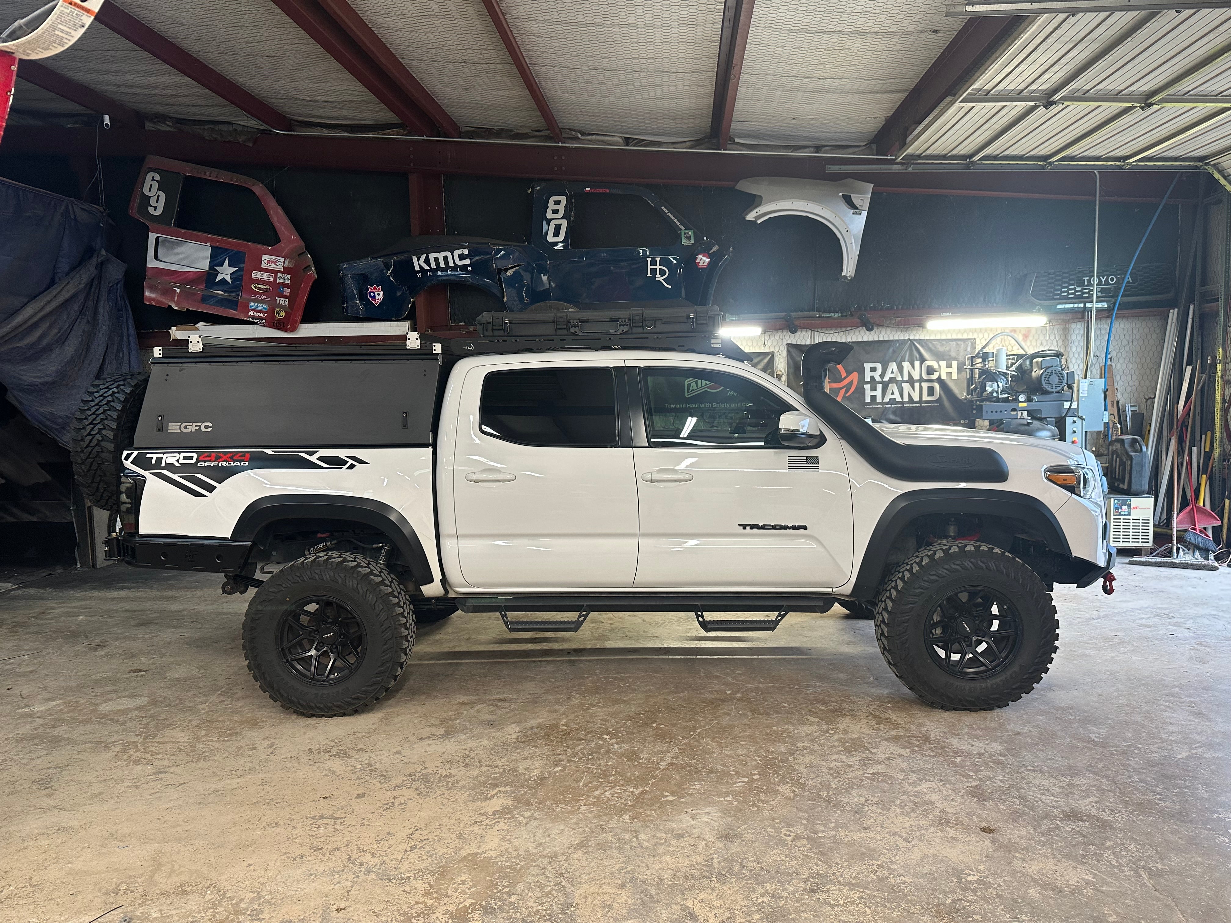 This 2019 Toyota Tacoma is outfitted with a GFC Platform Topper with Black panels. Check out more build specs below.