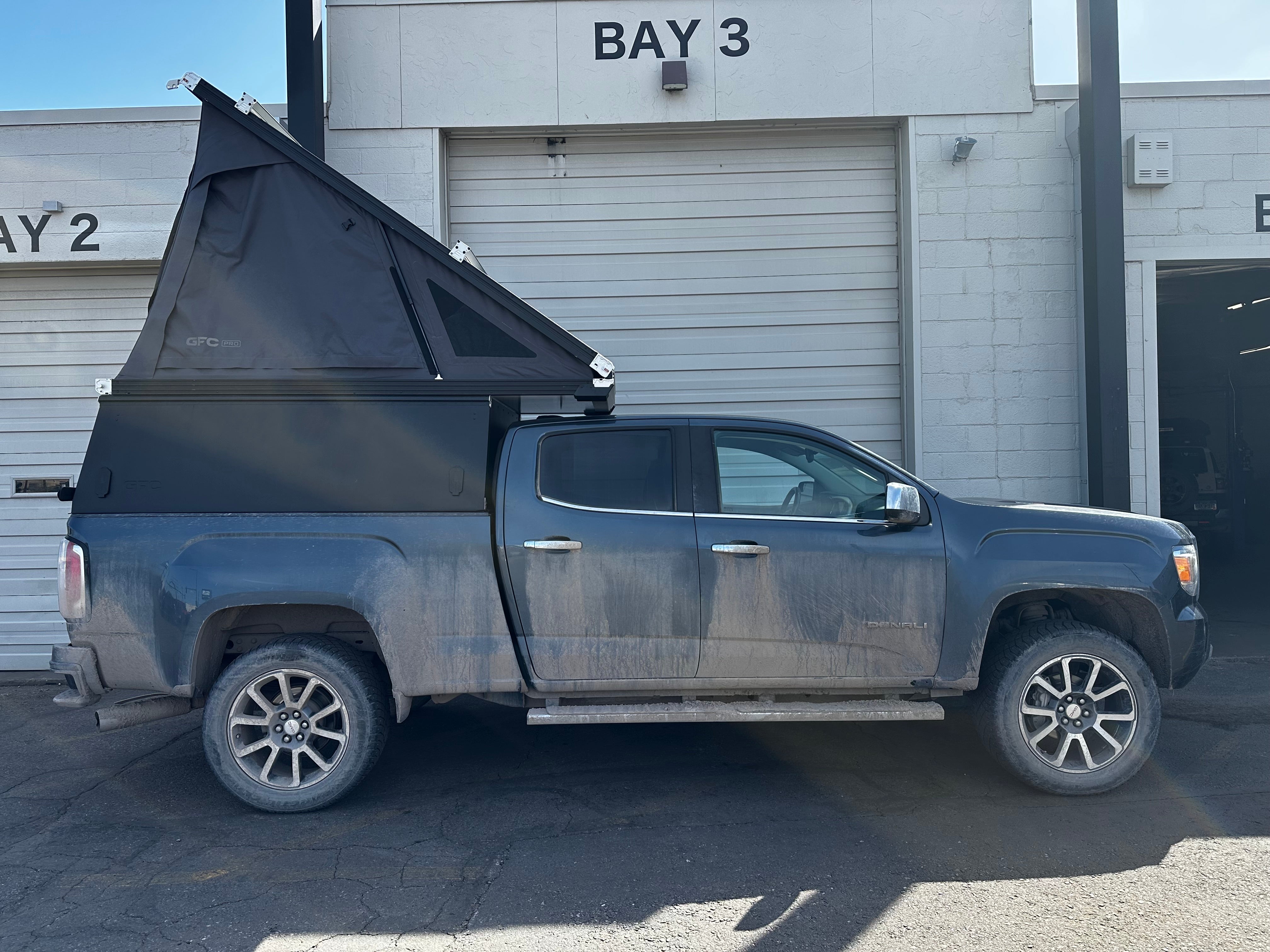 This 2020 Chevrolet Colorado is outfitted with a GFC Platform Camper with Black panels and a Stone Grey tent. Check out more build specs below.