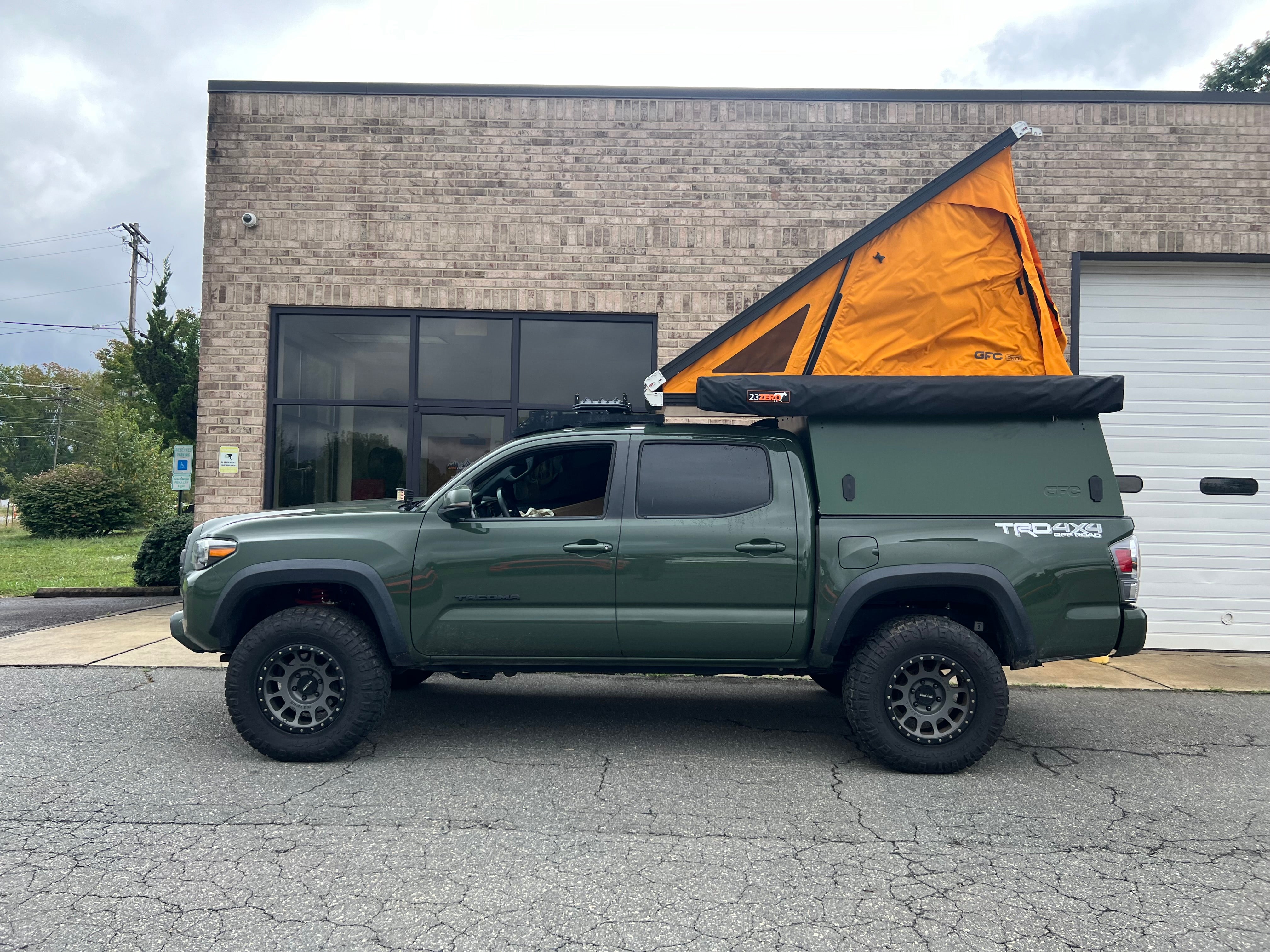Product: Platform Camper Panel Color: Rifle Green GFC Options: Side Door Year: 2021 Make: Toyota Model: Tacoma Cab/Bed: Double Cab 5 foot Truck Color: Green Wheels: Stock Suspension: Dobinson Tire: Mods: All I need is a GFC Instagram Handle: Install Date: 2024-09-19 Location: FL