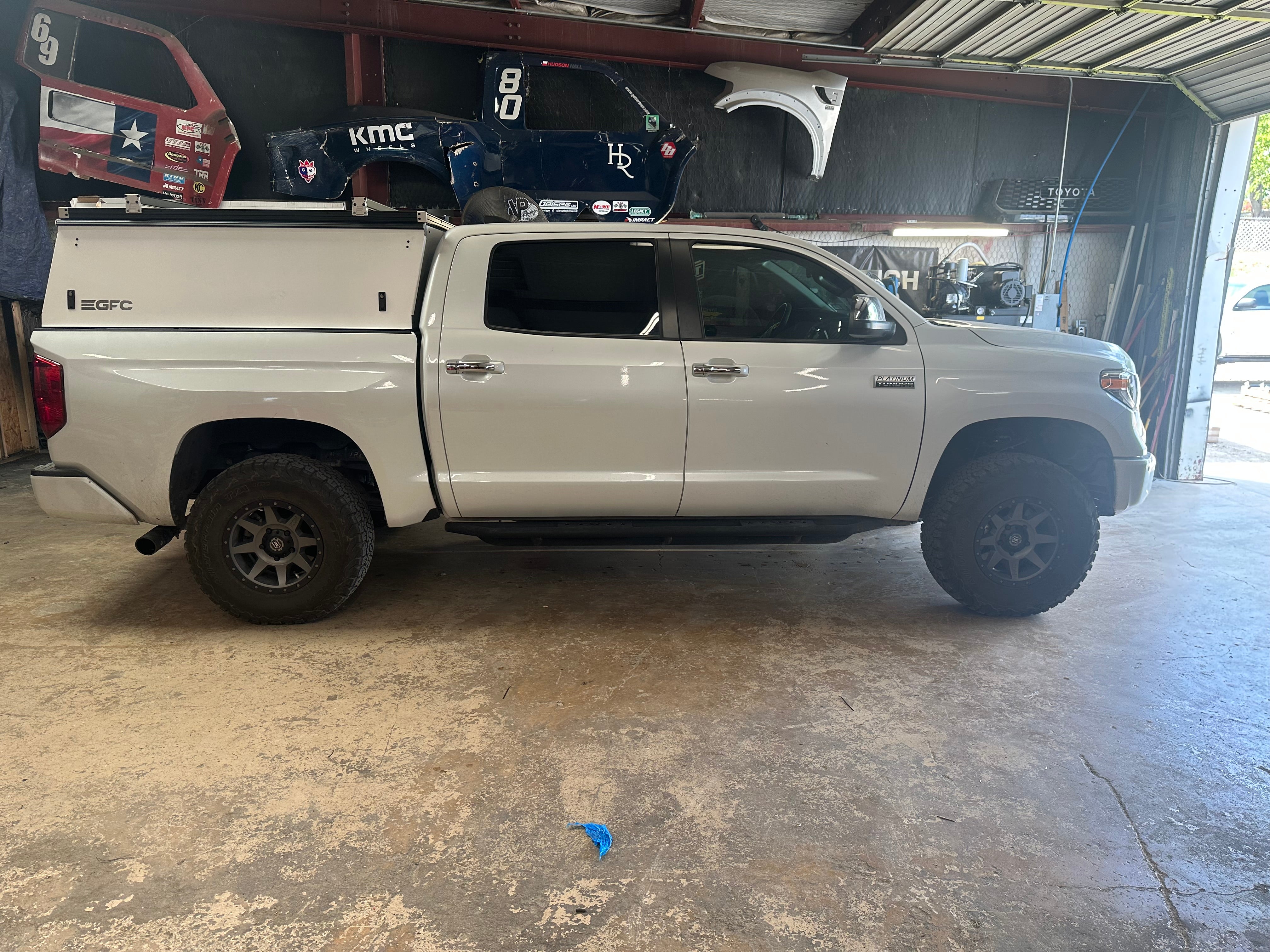 Product: Platform Topper Panel Color: White GFC Options: Beef Rack,Side Door Year: 2021 Make: Toyota Model:Tundra Cab/Bed: Crew Cab 5 foot Truck Color: White Wheels: Icon Suspension: Fox Tire: BFG K02 285/75/R17 Mods: All I need is a GFC Instagram Handle: Install Date: 2023-07-25 Location: TX