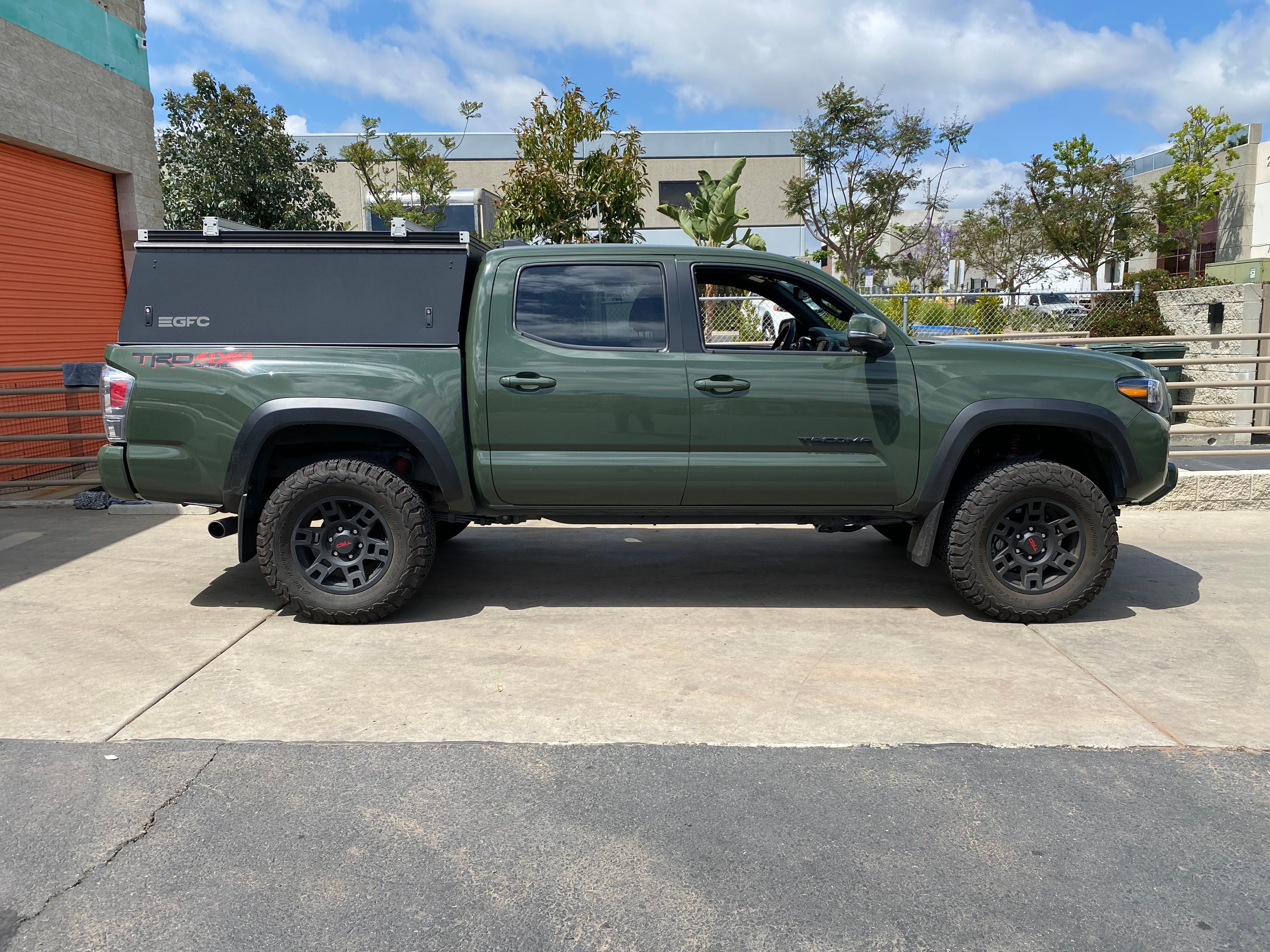 This 2022 Toyota Tacoma is outfitted with a GFC Platform Topper with Black panels. Check out more build specs below.
