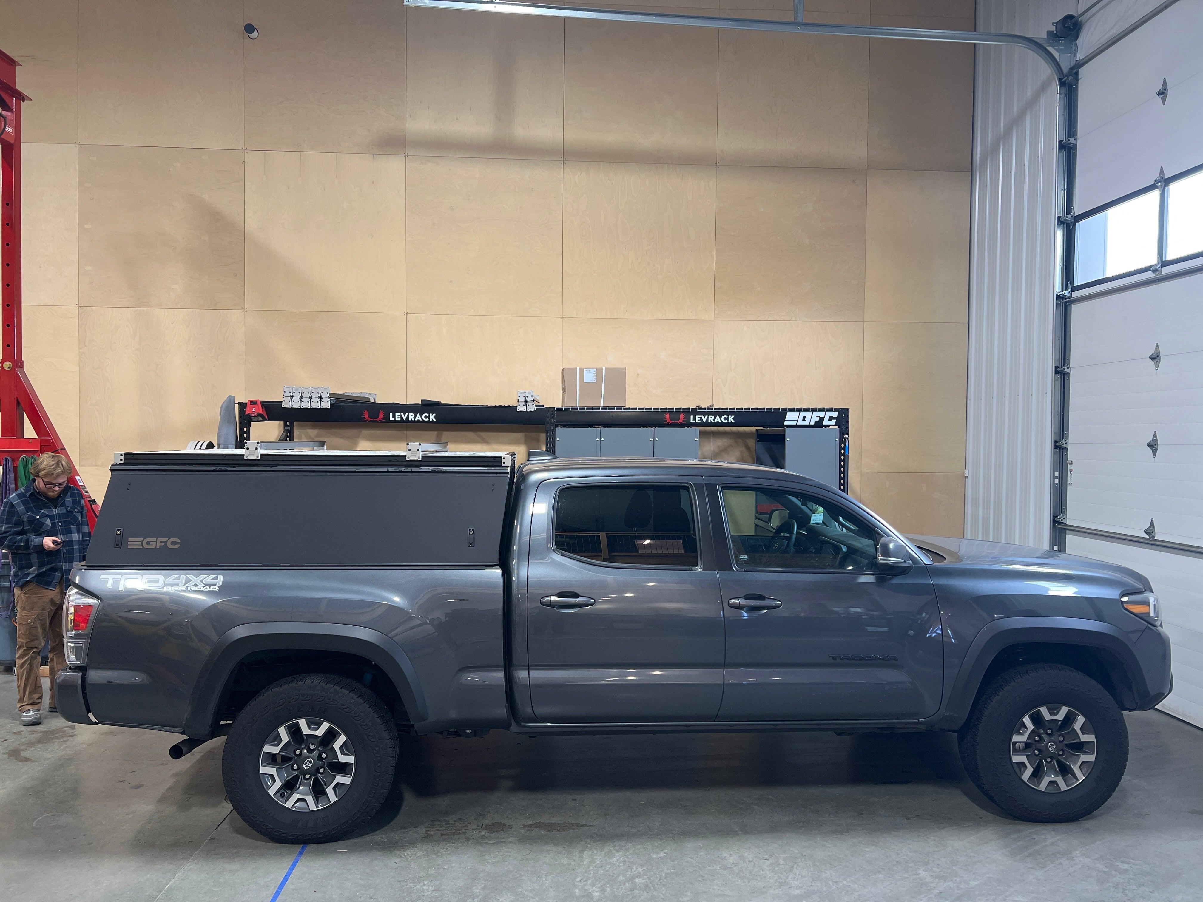 This 2022 Toyota Tacoma is outfitted with a GFC Platform Topper with Black panels. Check out more build specs below.