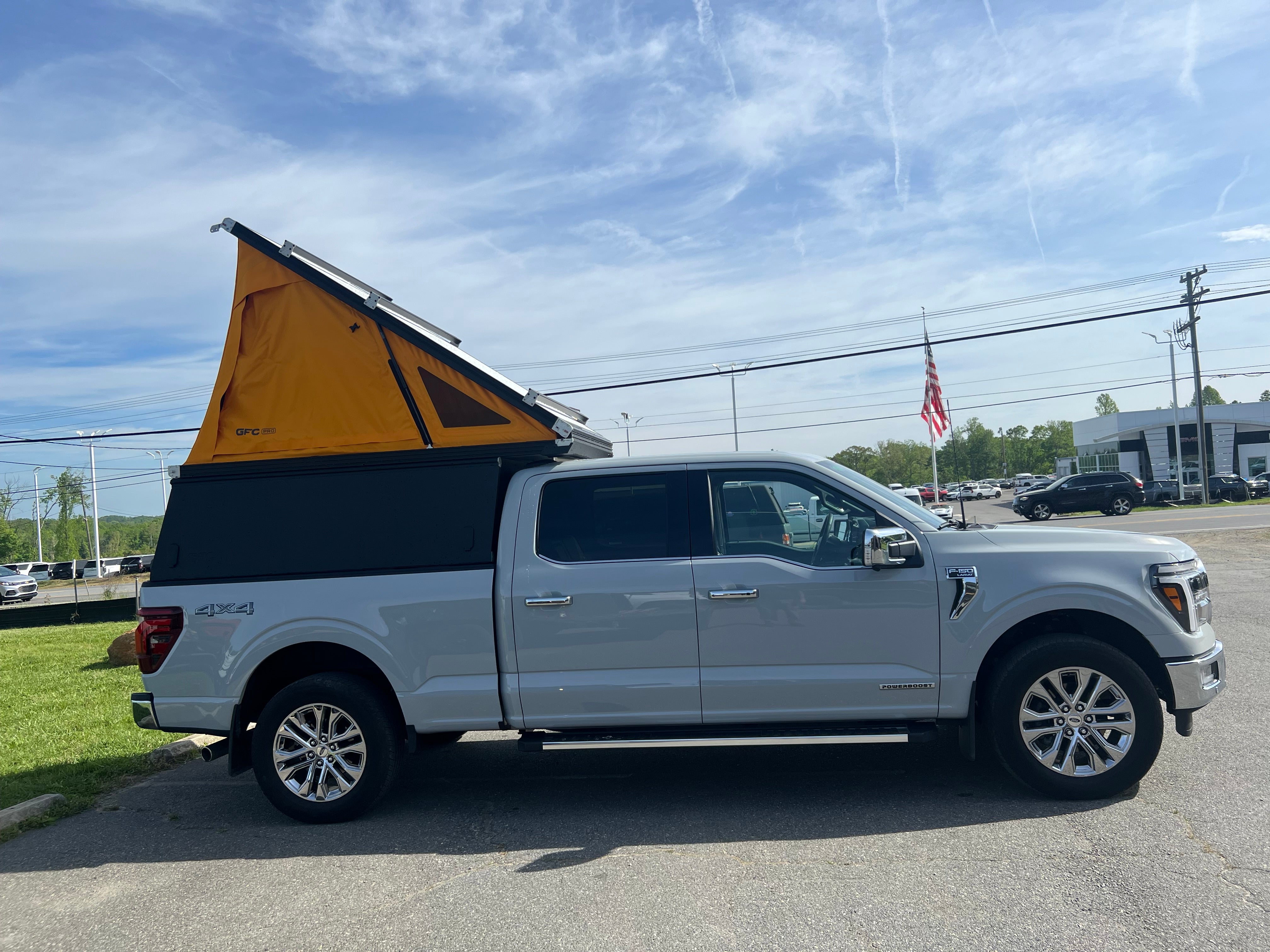 This 2023 GMC Sierra is outfitted with a GFC Platform Camper with Black panels and a Stone Grey tent. Check out more build specs below.