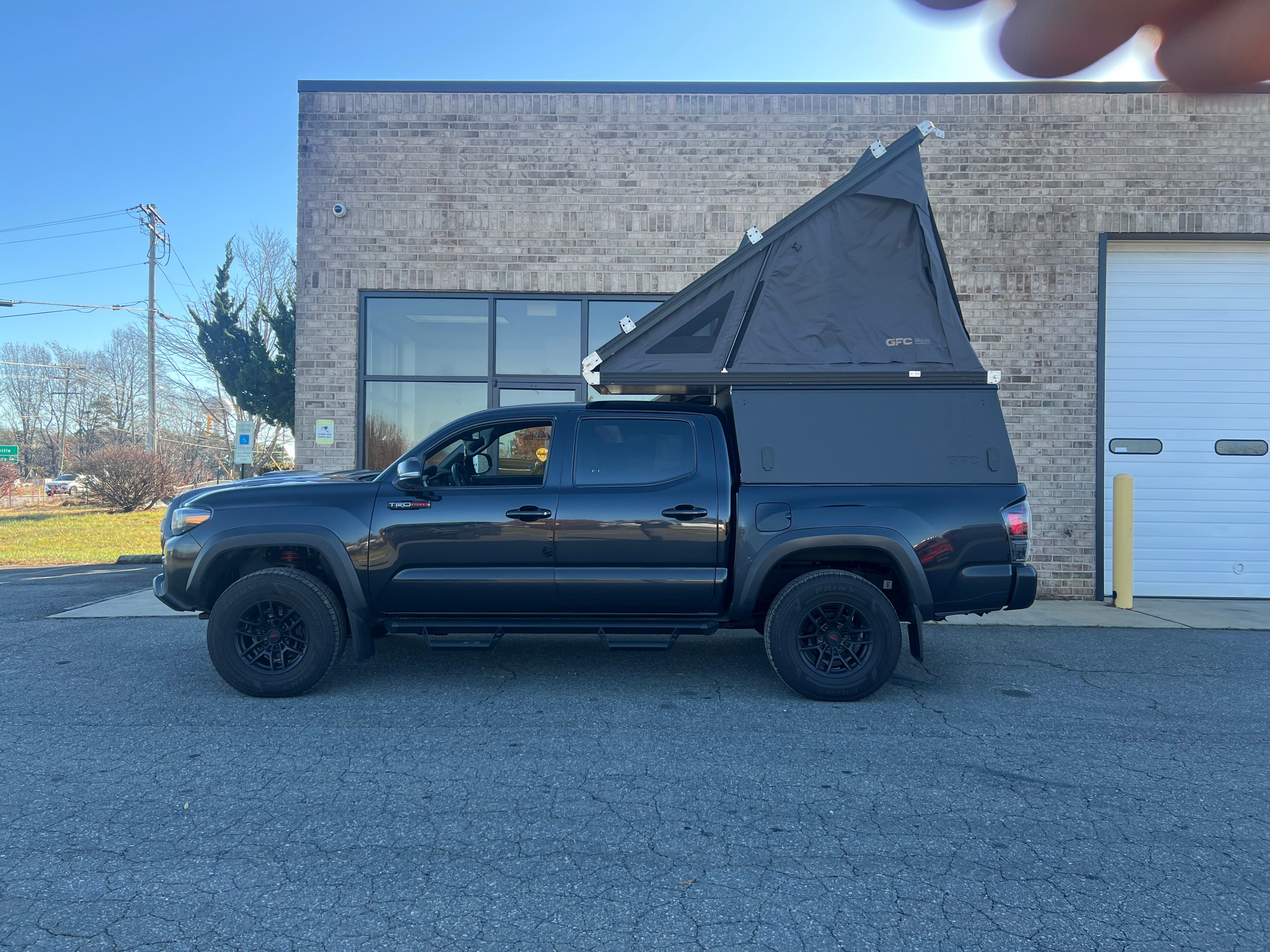 This 2023 Toyota Tacoma is outfitted with a GFC Platform Camper with Black panels and a Stone Grey tent. Check out more build specs below.