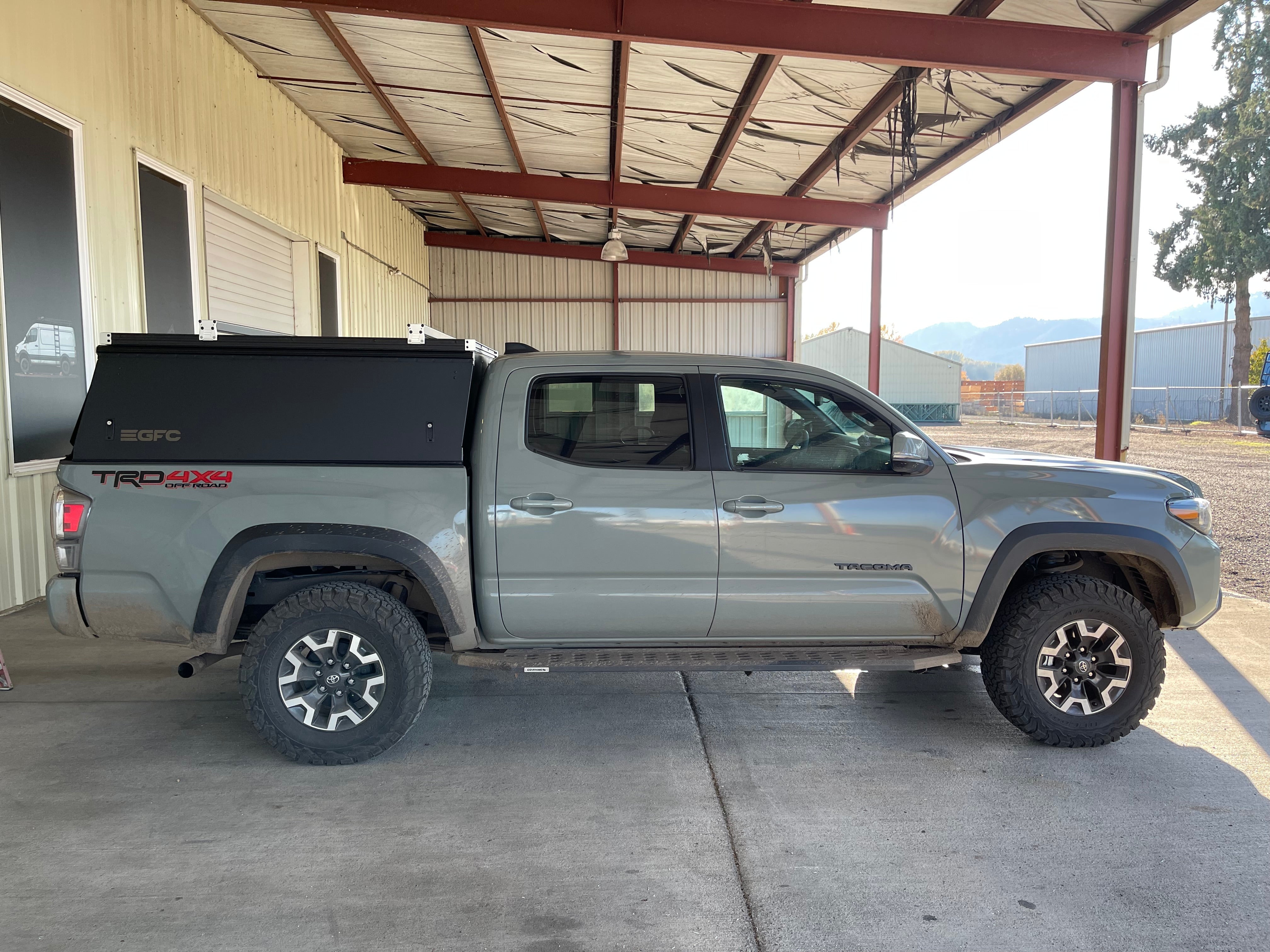 This 2023 Toyota Tacoma is outfitted with a GFC Platform Topper with Black panels. Check out more build specs below.
