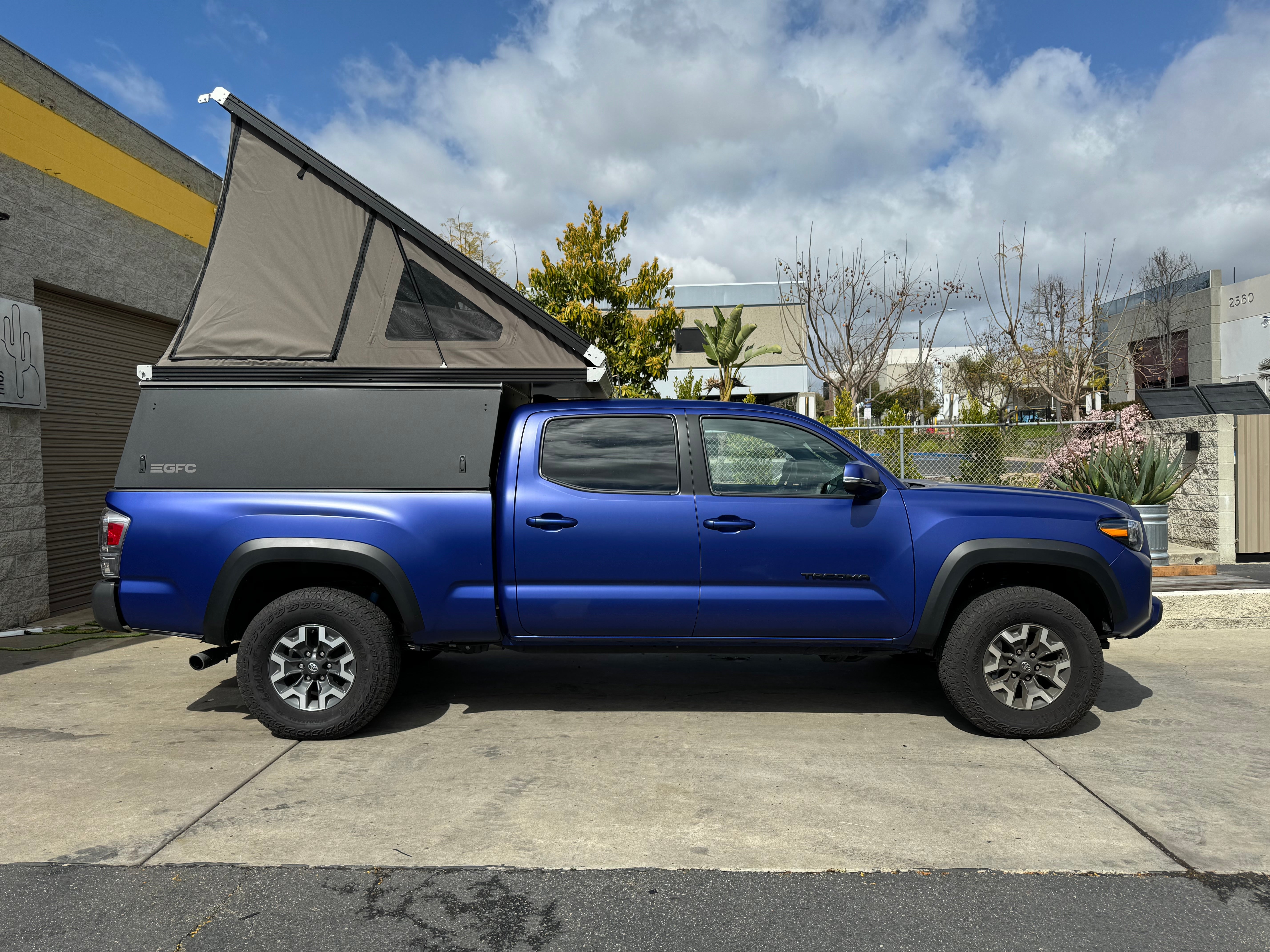 This 2023 Toyota Tacoma is outfitted with a GFC Platform Topper with Black panels. Check out more build specs below.