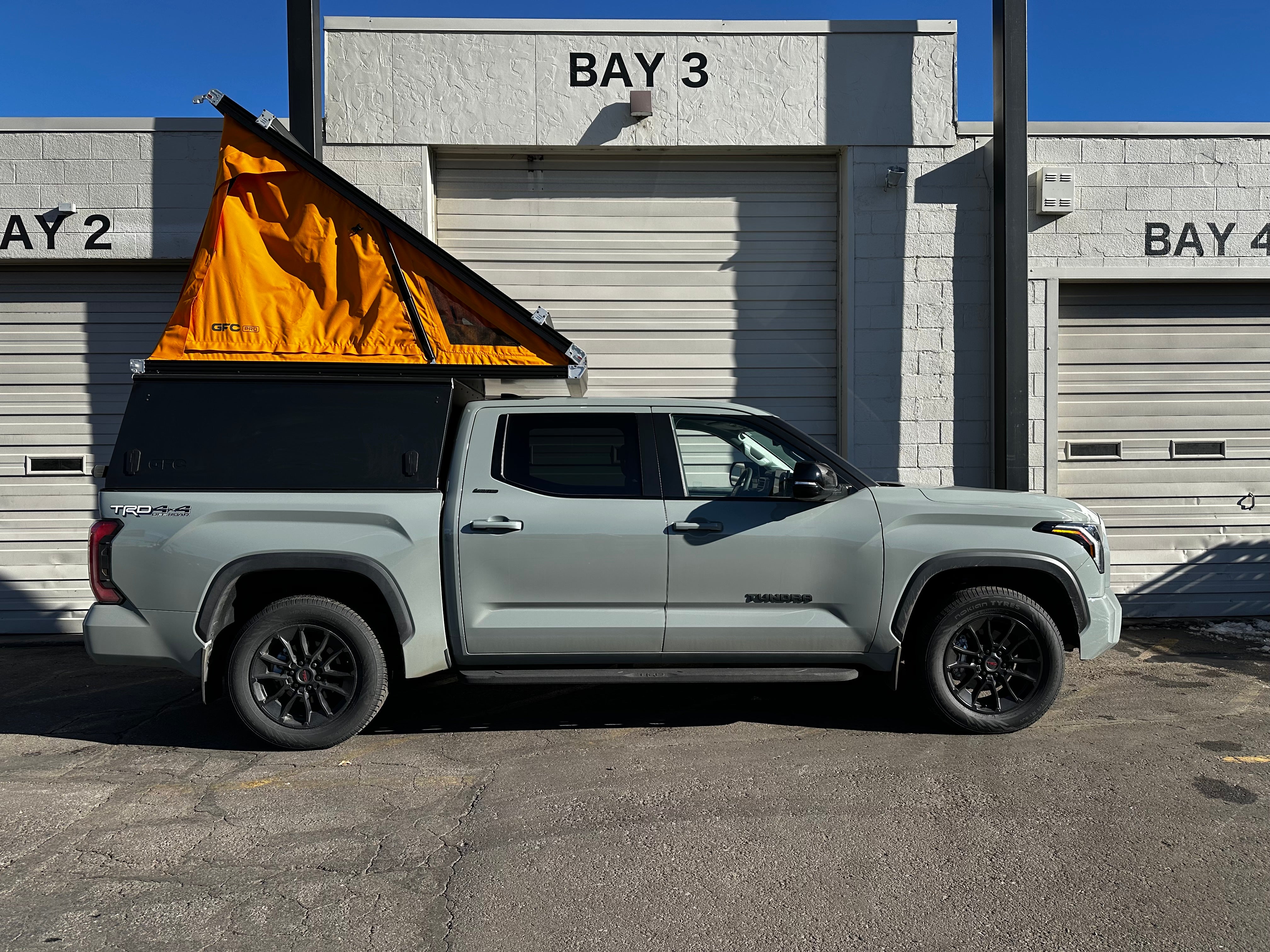 This 2023 Toyota Tundra is outfitted with a GFC Platform Camper with Black panels and a Tangerine Dream tent. Check out more build specs below.