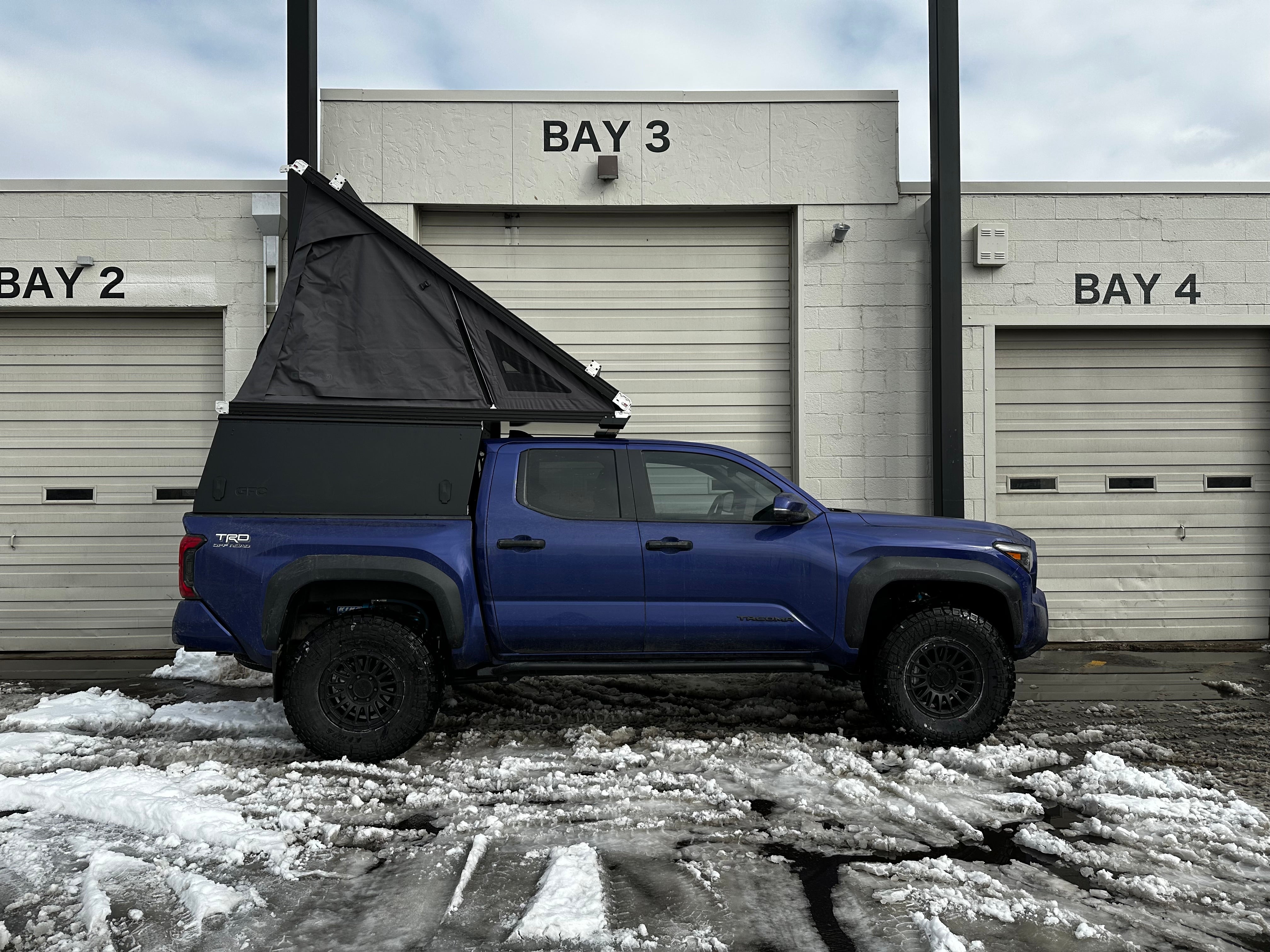 This 2024 Toyota Tacoma is outfitted with a GFC Platform Camper with Black panels and a Stone Grey tent. Check out more build specs below.