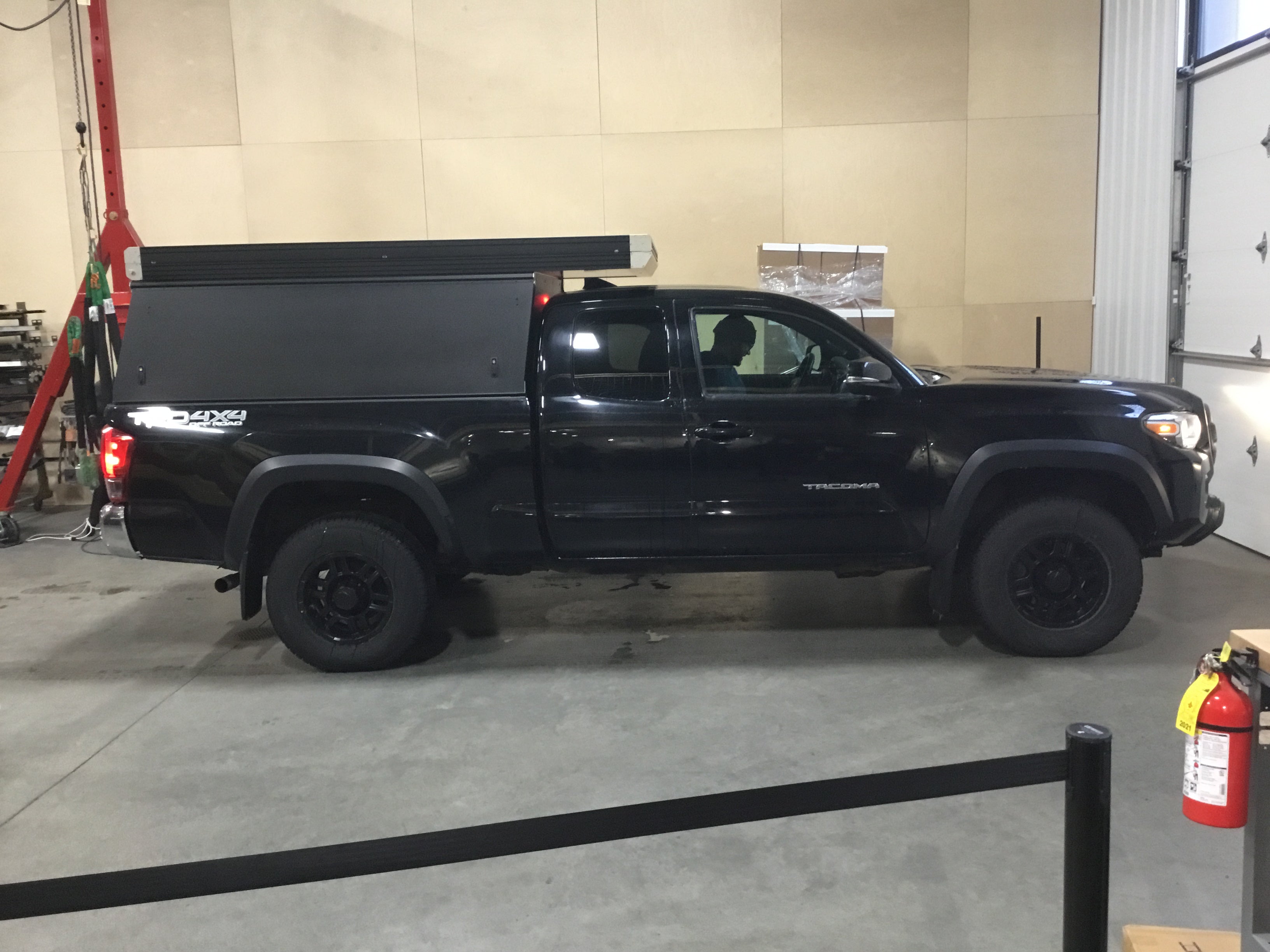 Product: Platform Camper Panel Color: Black GFC Options: Windows, Side Door Year: 2017 Make: Toyota Model: Tacoma Cab/Bed: Access Cab 6 Foot Truck Color Black Wheels: Black Rhino Suspension: Stock Tire: Toyo Observe 245/75r/r17 Mods: All I need is a GFC Instagram Handle: Install Date: 2021-12-05 Location: Invermere BCd