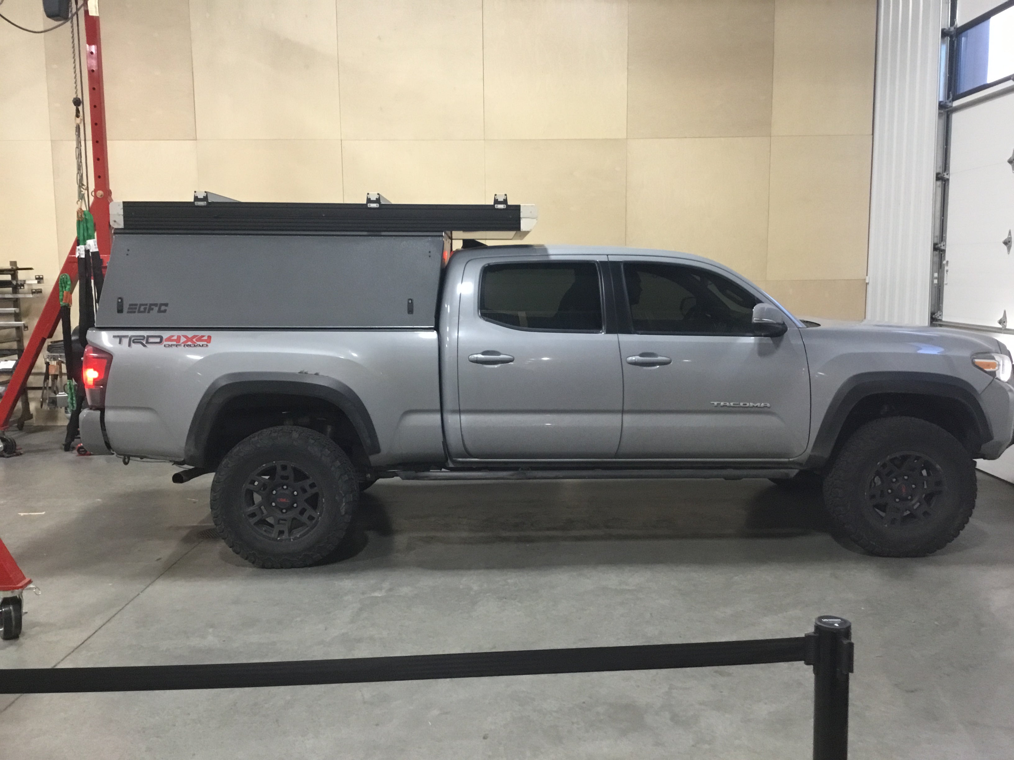 This 2018 Toyota Tacoma is outfitted with a GFC Platform Camper with Battleship Gray panels. Check out more build specs below.