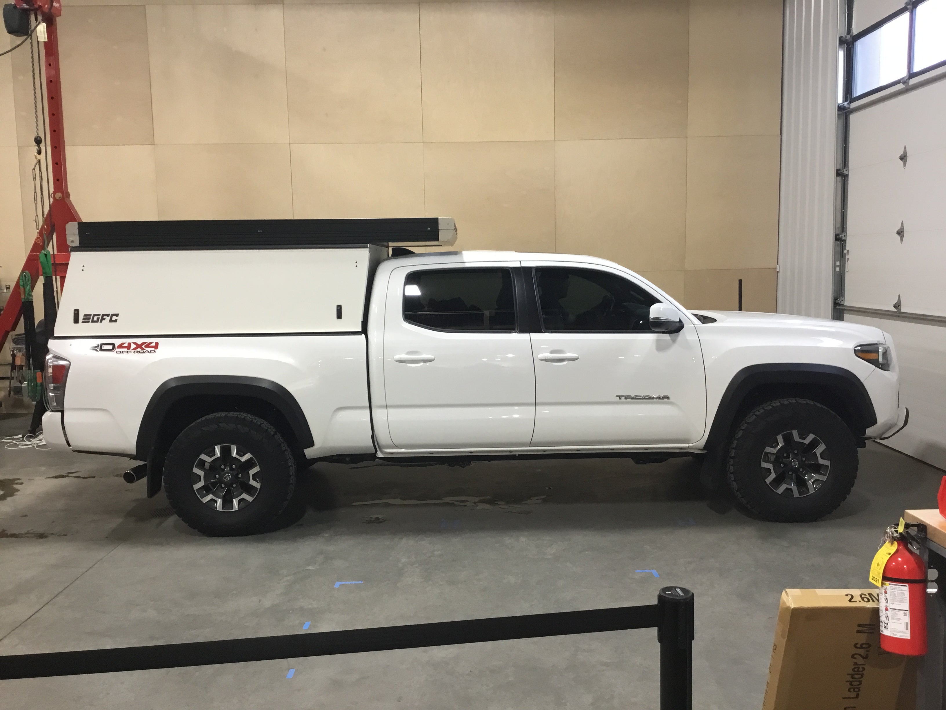 Product: Platform Camper Panel Color: White GFC Options: Windows, Side Door, Sheets Year: 2021 Make: Toyota Model: Tacoma Cab/Bed: Double Cab 6 Foot Truck Color White Wheels: Stock Suspension: Stock Tire: BFG KO2 265/75/r17 Mods: All I need is a GFC Instagram Handle: Install Date: 2021-12-09 Location: Las Vegas NV