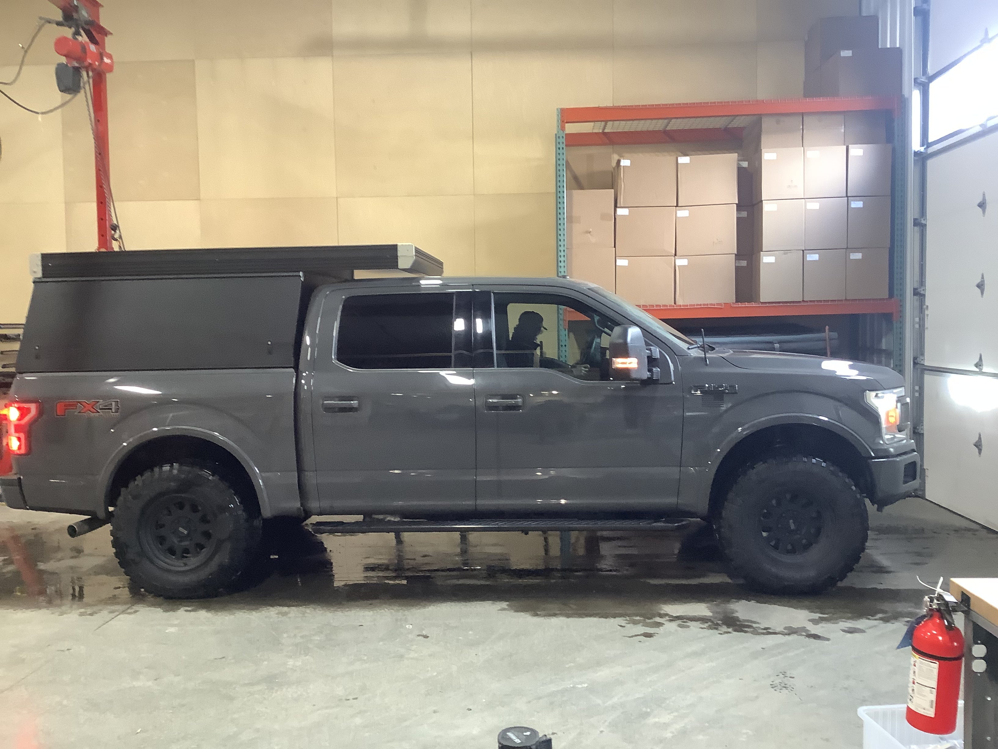 Product: Platform Camper Panel Color: Black GFC Options: Windows, Side Door Year: 2018 Make: Ford Model: F150 Cab/Bed: Double Cab 5 foot Truck Color Gray Wheels: Black Rhino Suspension: Fox Tire: General Grabber 35/12.5/17 Mods: All I need is a GFC Instagram Handle: Install Date: 2022-03-05 Location: Bountiful, UT