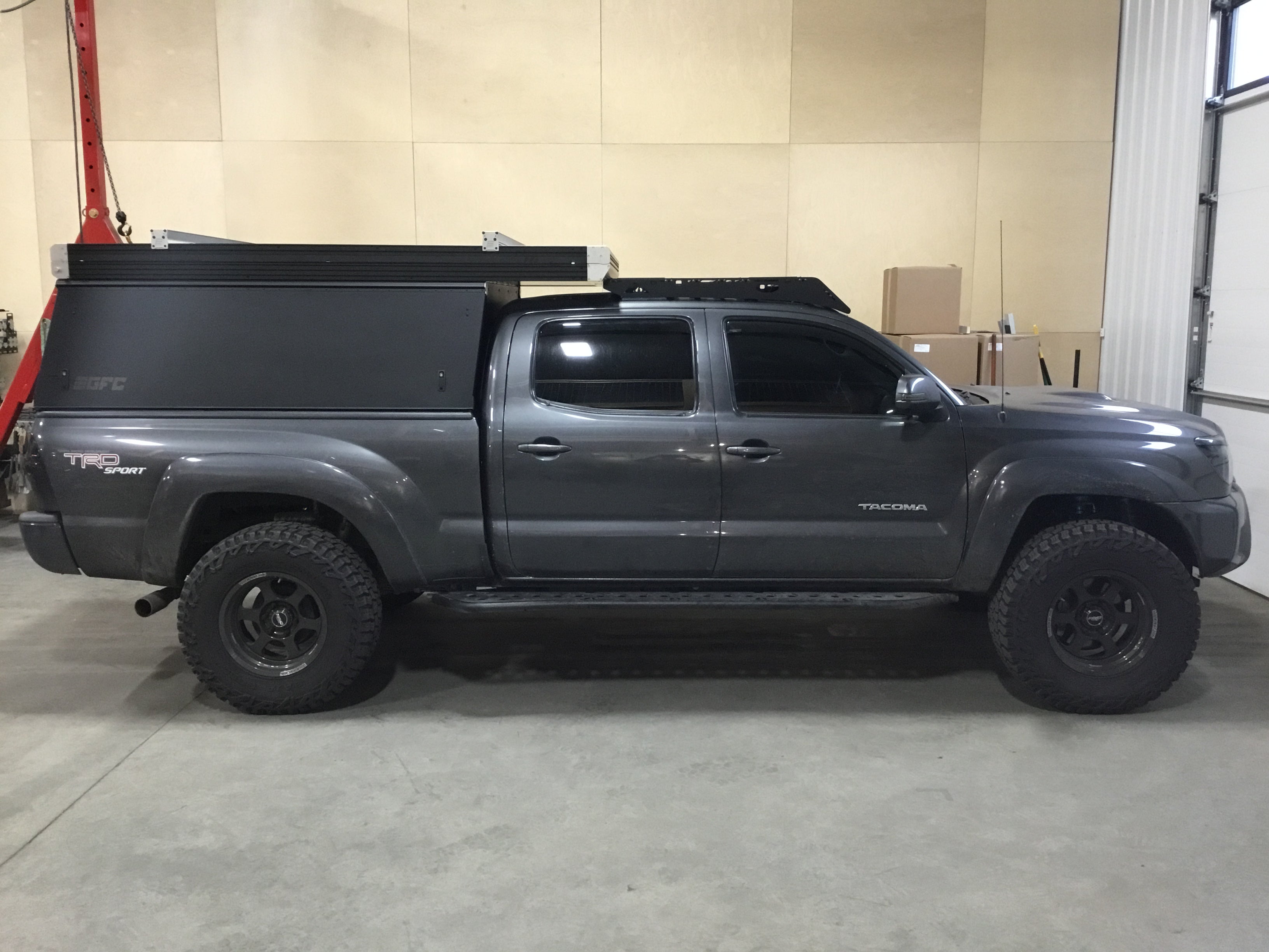 This 2013 Toyota Tacoma is outfitted with a GFC Platform Camper with Black panels. Check out more build specs below.