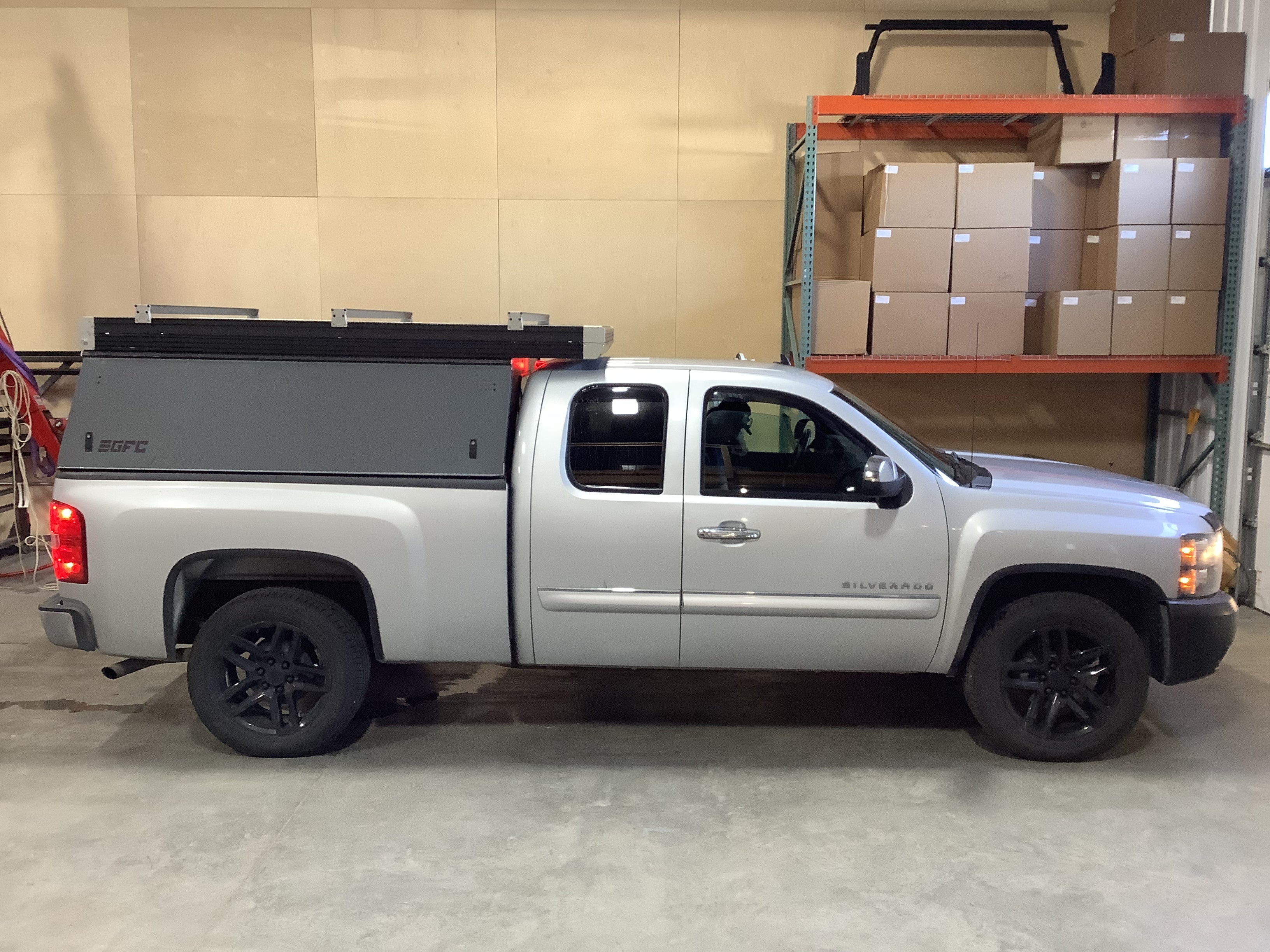 This 2012 Chevrolet Silverado is outfitted with a GFC Platform Camper with Battleship Gray panels. Check out more build specs below.