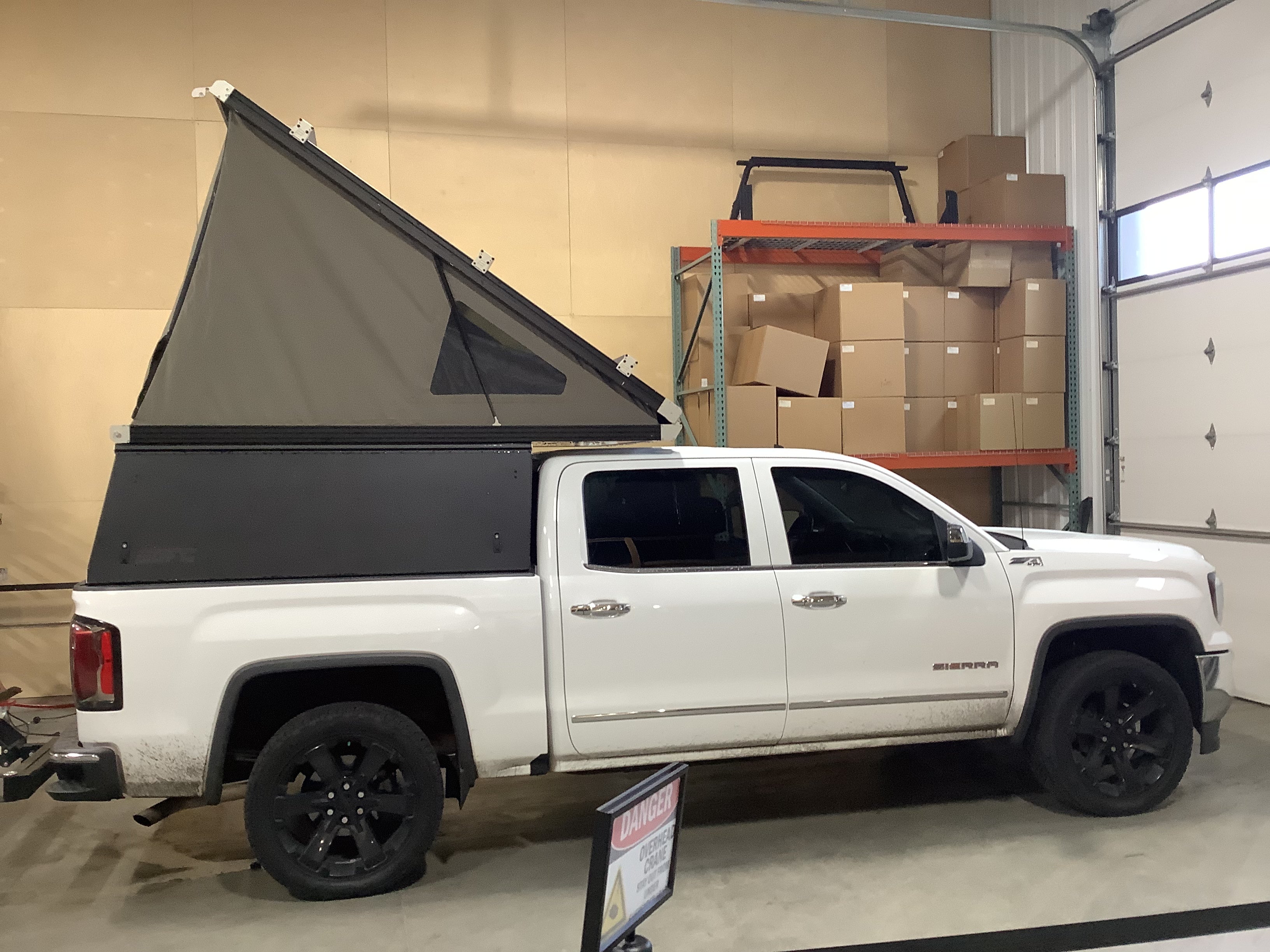 Product: Platform Camper Panel Color: Black GFC Options: Windows, Beef Rack Year: 2017 Make: Chevrolet Model: Silverado Cab/Bed: Double Cab 6 Foot Truck Color White Wheels: Stock Suspension: Stock Tire: General Grabber 285/45/R22 Mods: All I need is a GFC Instagram Handle: Install Date: 2022-07-03 Location: CO
