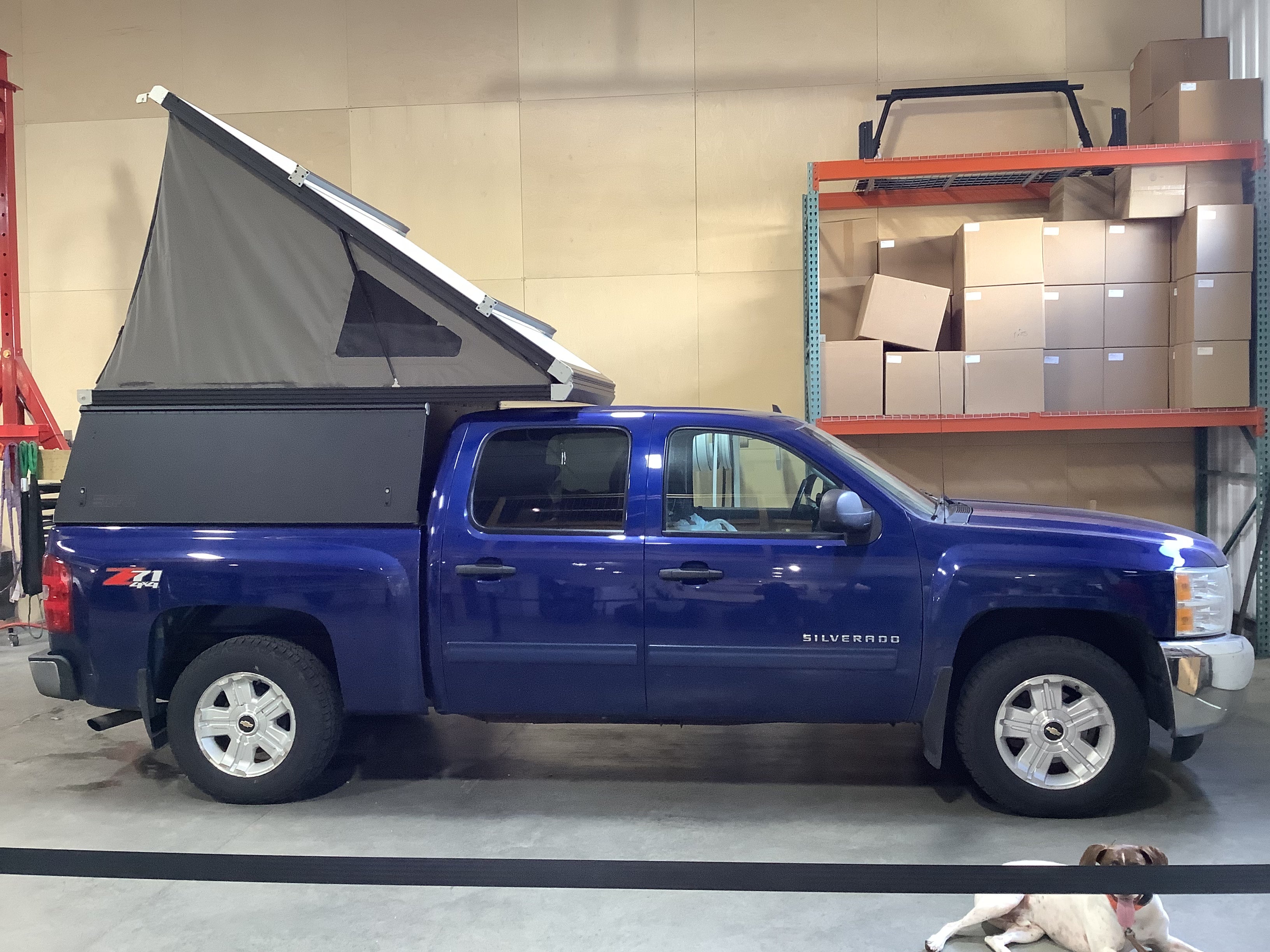 Product: Platform Camper Panel Color: Black GFC Options: Windows, Beef Rack Year: 2013 Make: Chevrolet Model: Silverado Cab/Bed: Double Cab 6 Foot Truck Color Blue Wheels: Stock Suspension: Stock Tire: Cooper Discoverer 265/65/18 Mods: All I need is a GFC Instagram Handle: Install Date: 2022-07-07 Location: MN