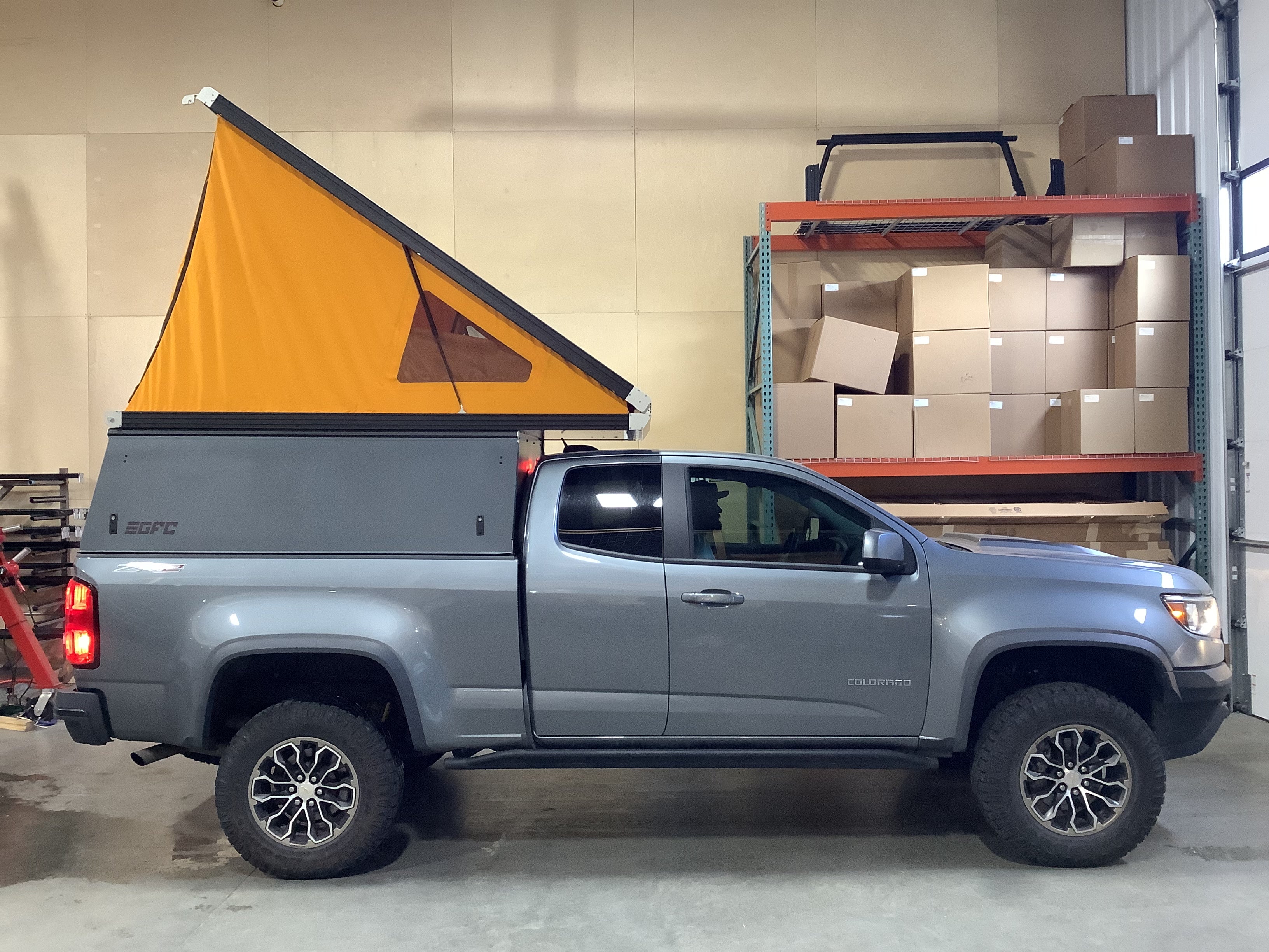 This 2018 Chevrolet Colorado is outfitted with a GFC Platform Camper with Black panels. Check out more build specs below.