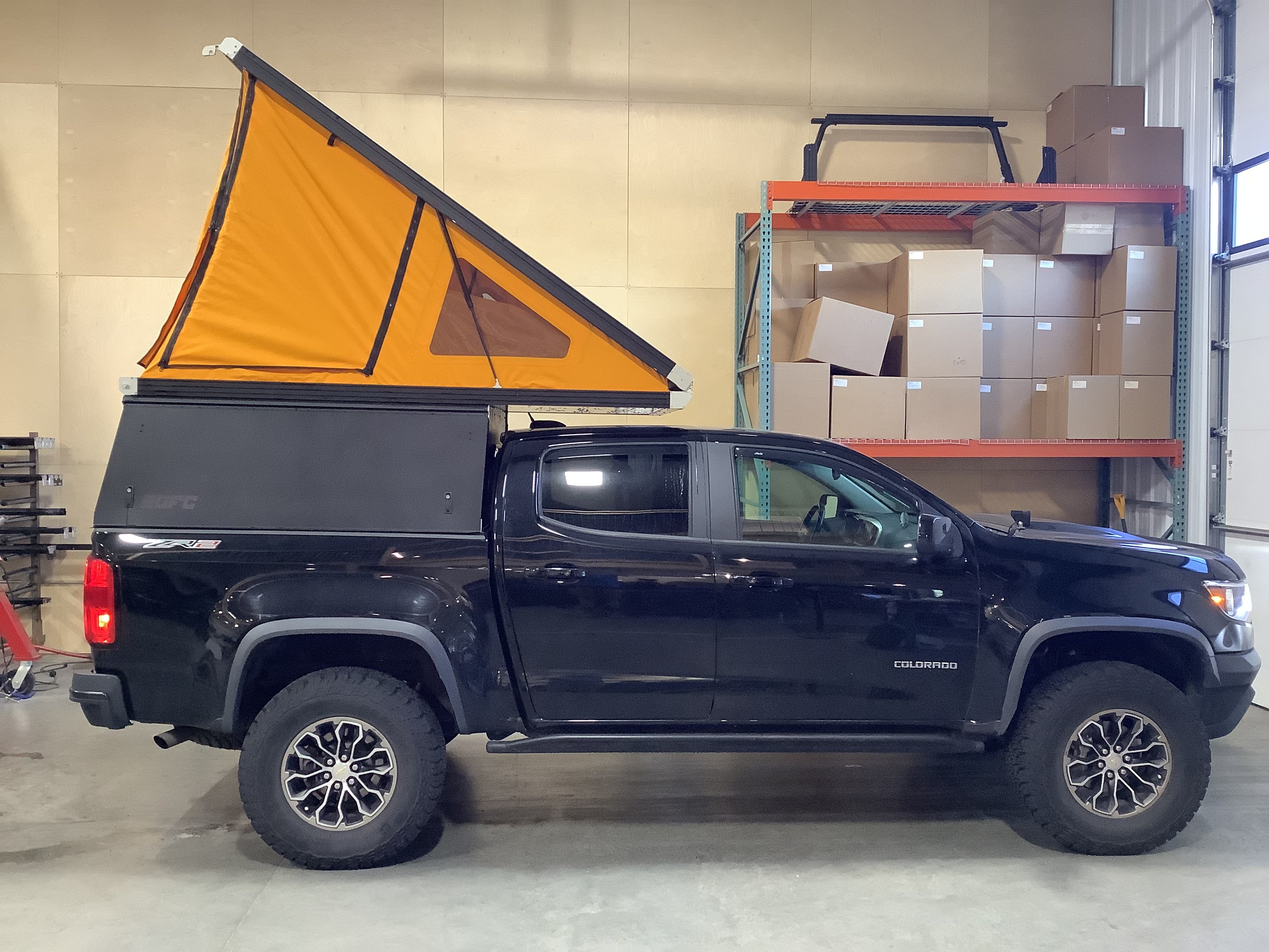 This 2019 Chevrolet Colorado is outfitted with a GFC Platform Camper with Black panels. Check out more build specs below.