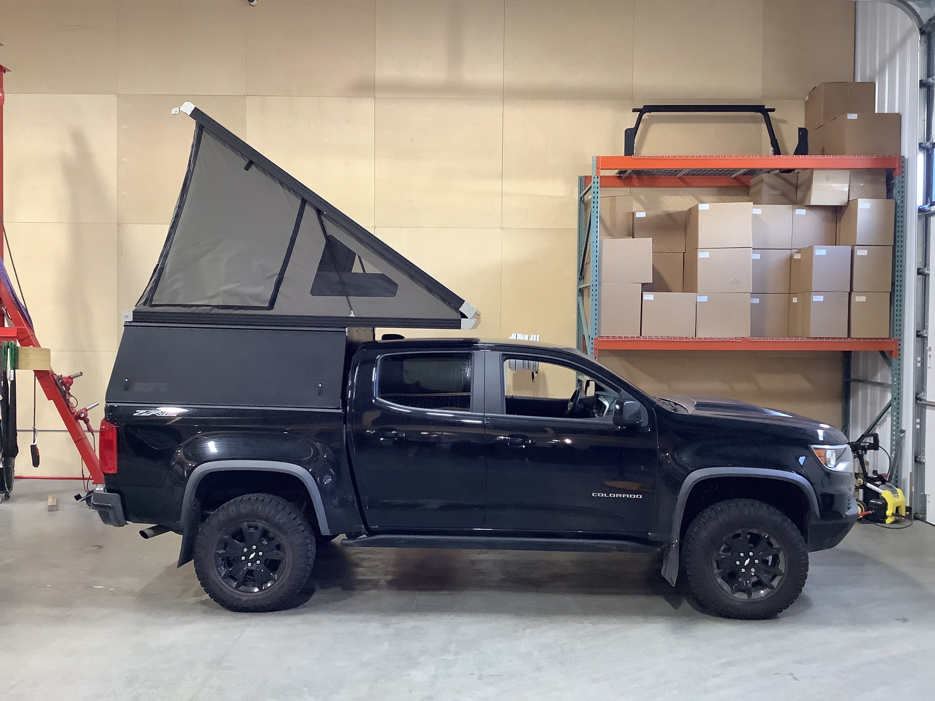 Product: Platform Camper Panel Color: Black GFC Options: Windows, Side Door Year: 2021 Make: Chevrolet Model: Colorado Cab/Bed: Double Cab 5 foot Truck Color Black Wheels: Stock Suspension: Stock Tire: Goodyear Wrangler Duratrac 265/65/R17 Mods: All I need is a GFC Instagram Handle:@Scheersy_ Install Date: 2022-07-17 Location: TX