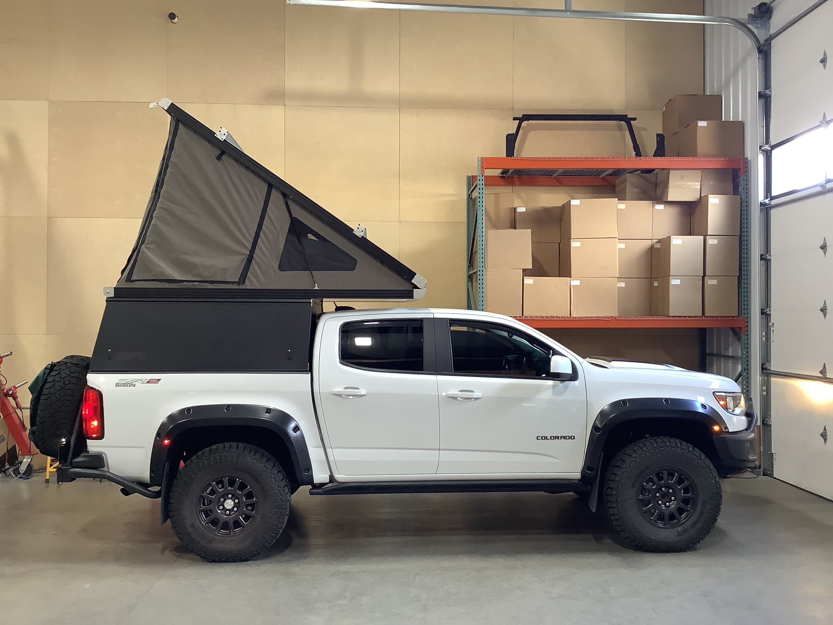 This 2020 Chevrolet Colorado is outfitted with a GFC Platform Camper with Black panels. Check out more build specs below.