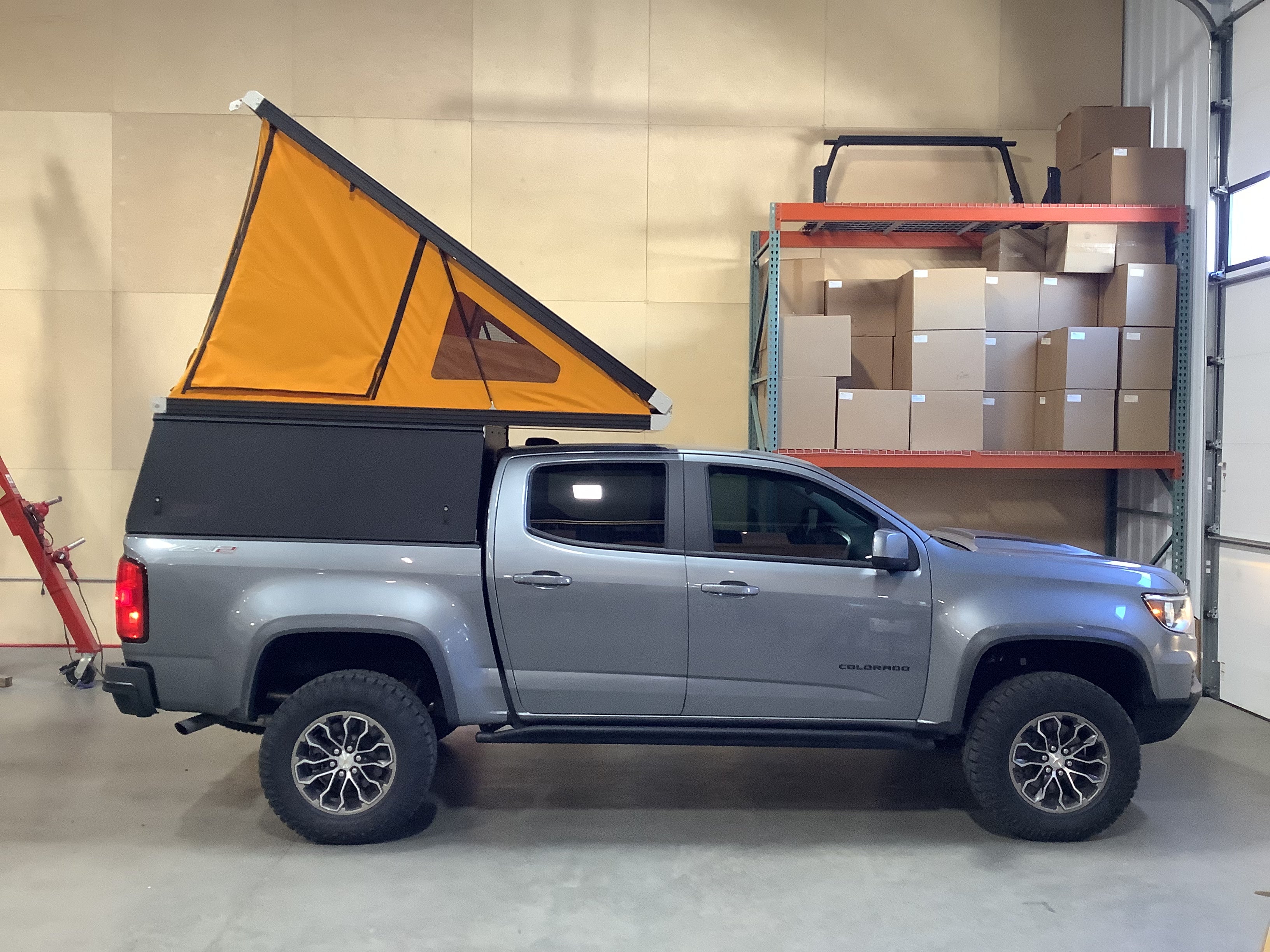 Product: Platform Camper Panel Color: Black GFC Options: Windows, Side Door Year: 2021 Make: Chevrolet Model: Colorado Cab/Bed: Double Cab 5 foot Truck Color Gray Wheels: Stock Suspension: Stock Tire: Goodyear Wrangler Duratrac 265/65/R17 Mods: All I need is a GFC Instagram Handle: Install Date: 2022-07-22 Location: AZ