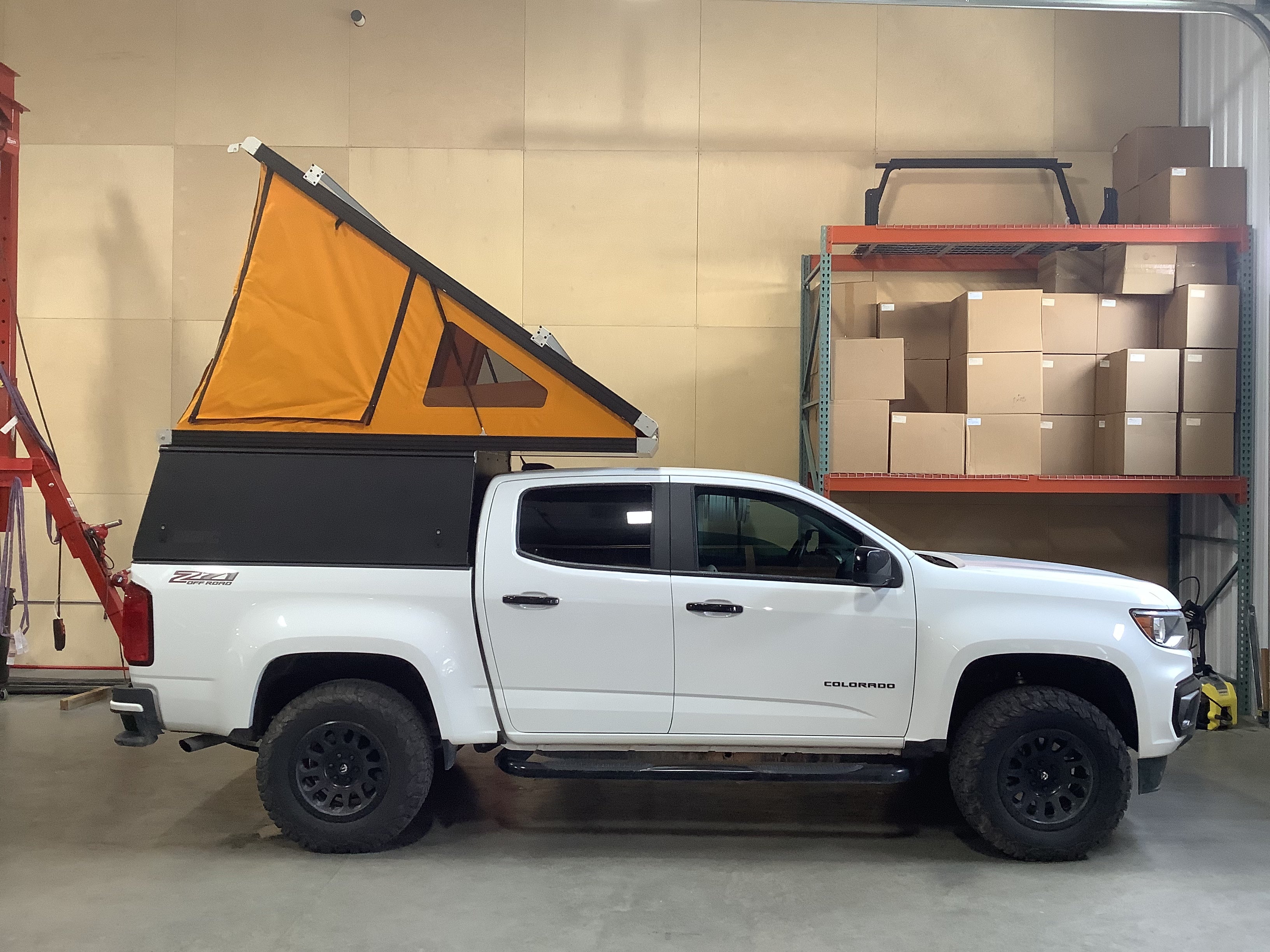 This 2022 Chevrolet Colorado is outfitted with a GFC Platform Camper with Black panels. Check out more build specs below.