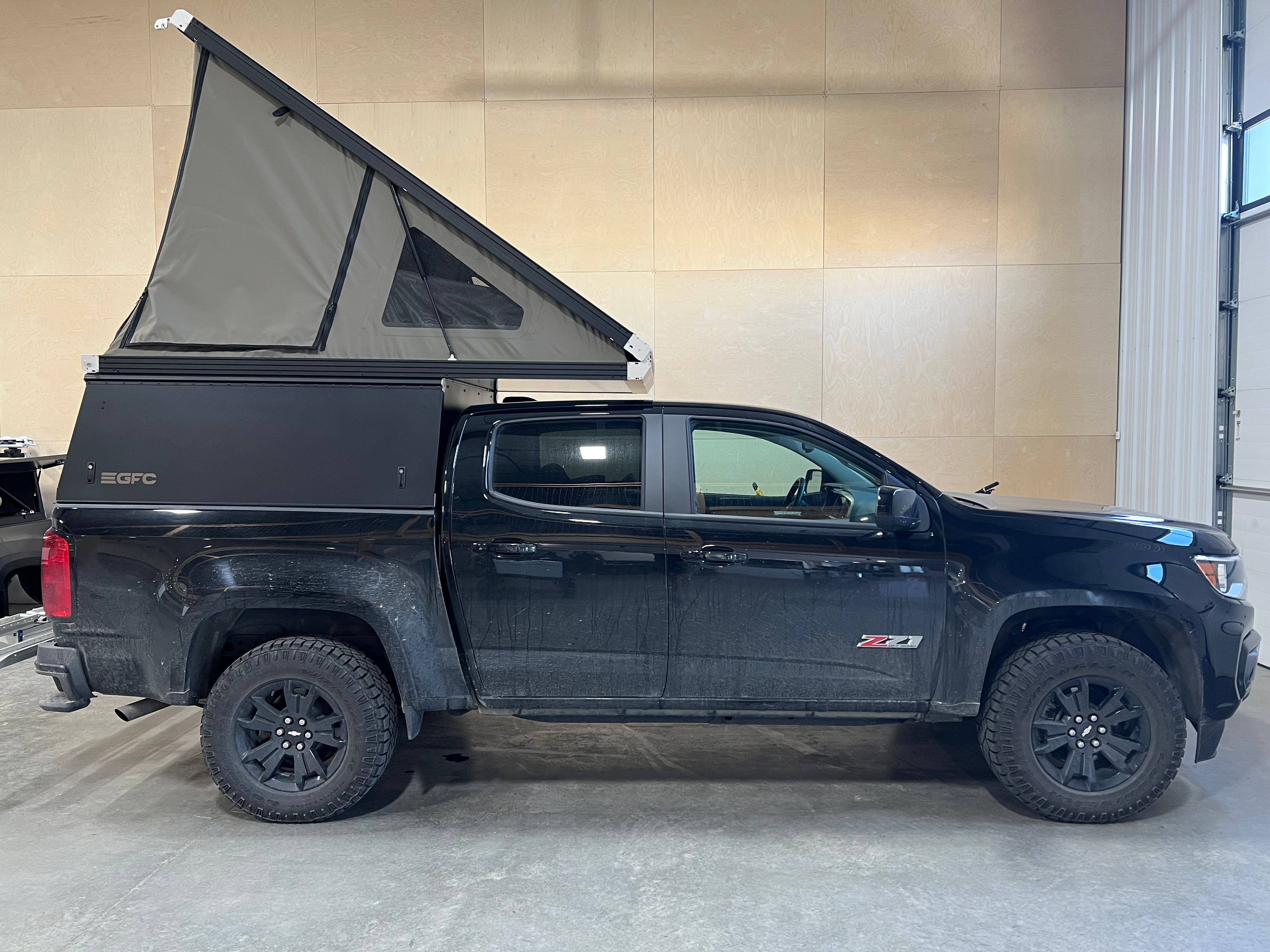 This 2022 Chevrolet Colorado is outfitted with a GFC Platform Camper with Black panels. Check out more build specs below.