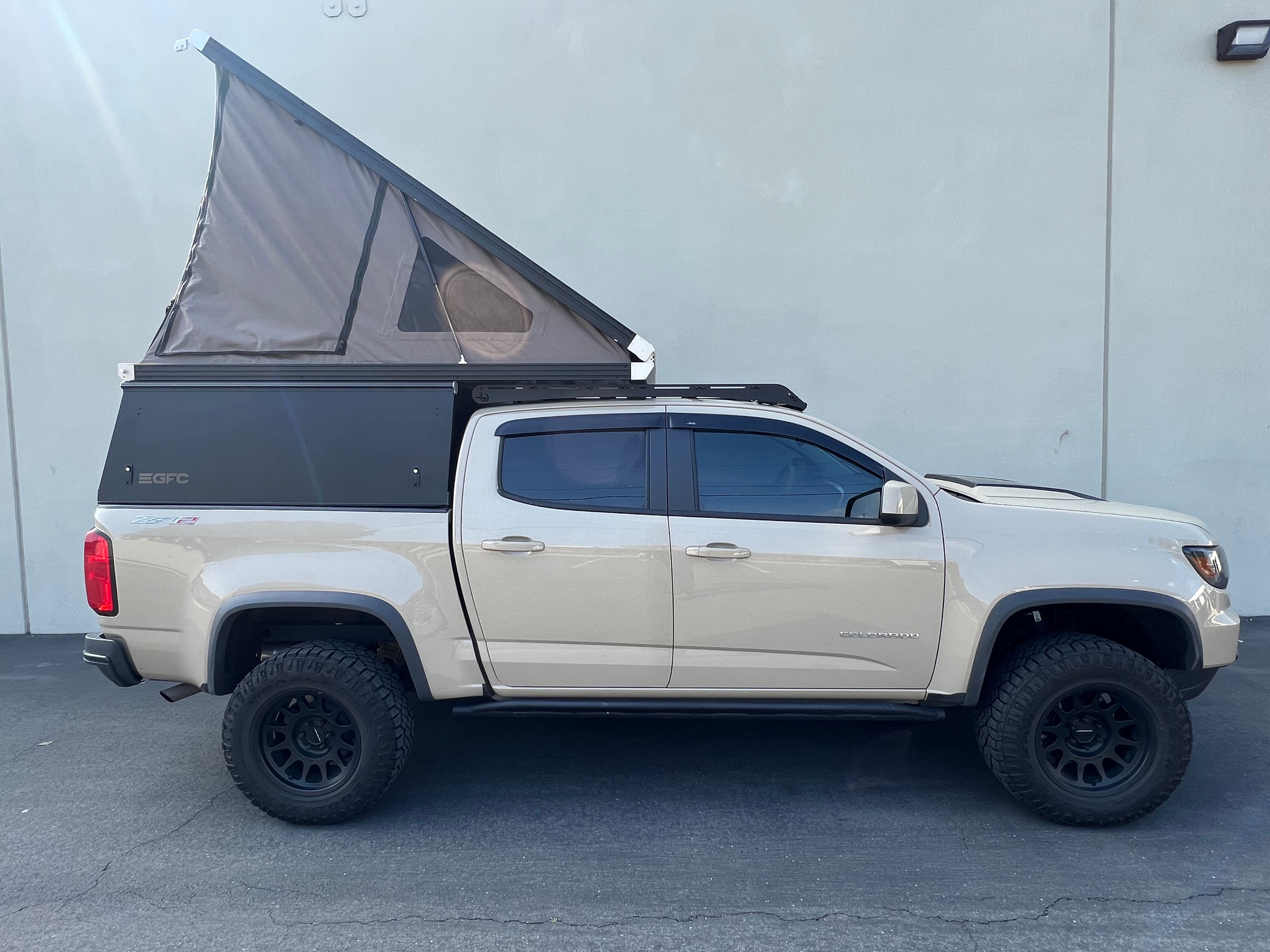 This 2022 Chevrolet Colorado is outfitted with a GFC Platform Camper with Black panels. Check out more build specs below.