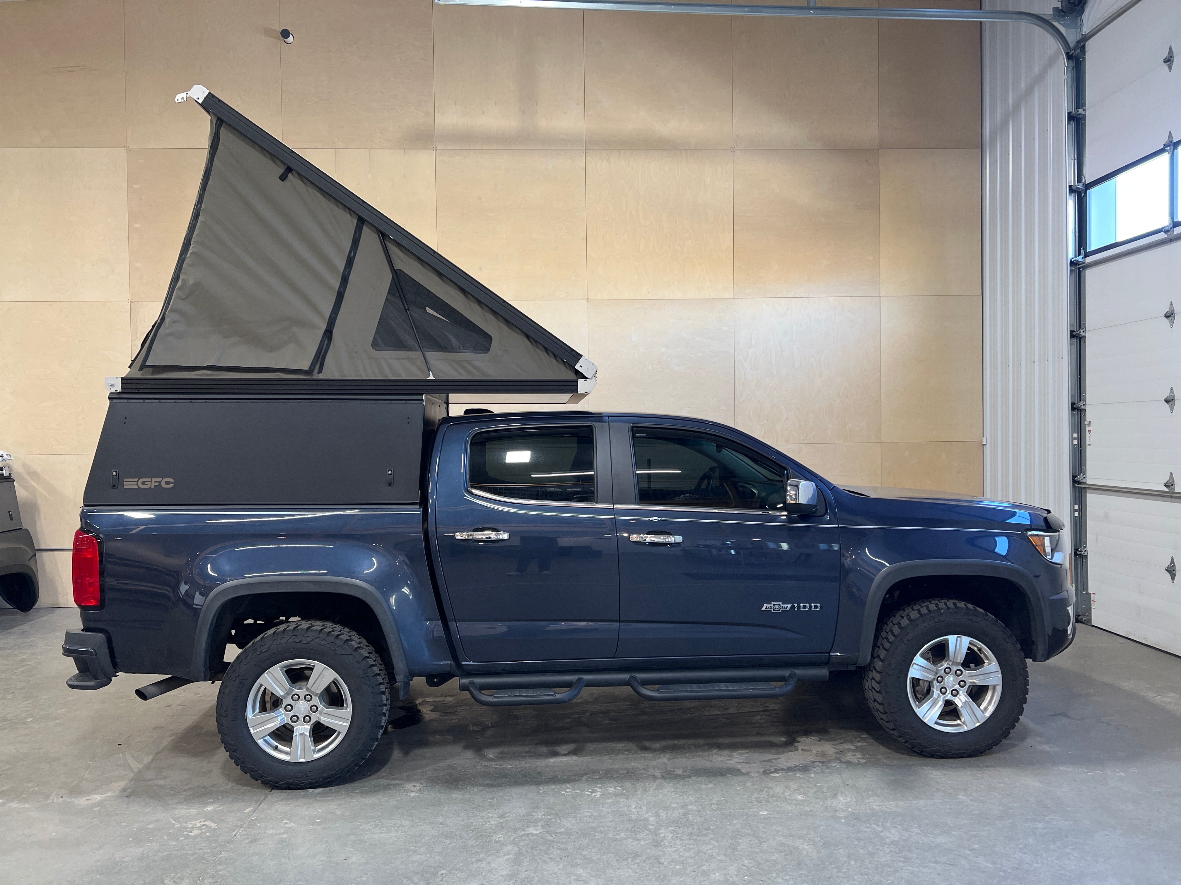 This 2018 Chevrolet Colorado is outfitted with a GFC Platform Camper with Black panels. Check out more build specs below.