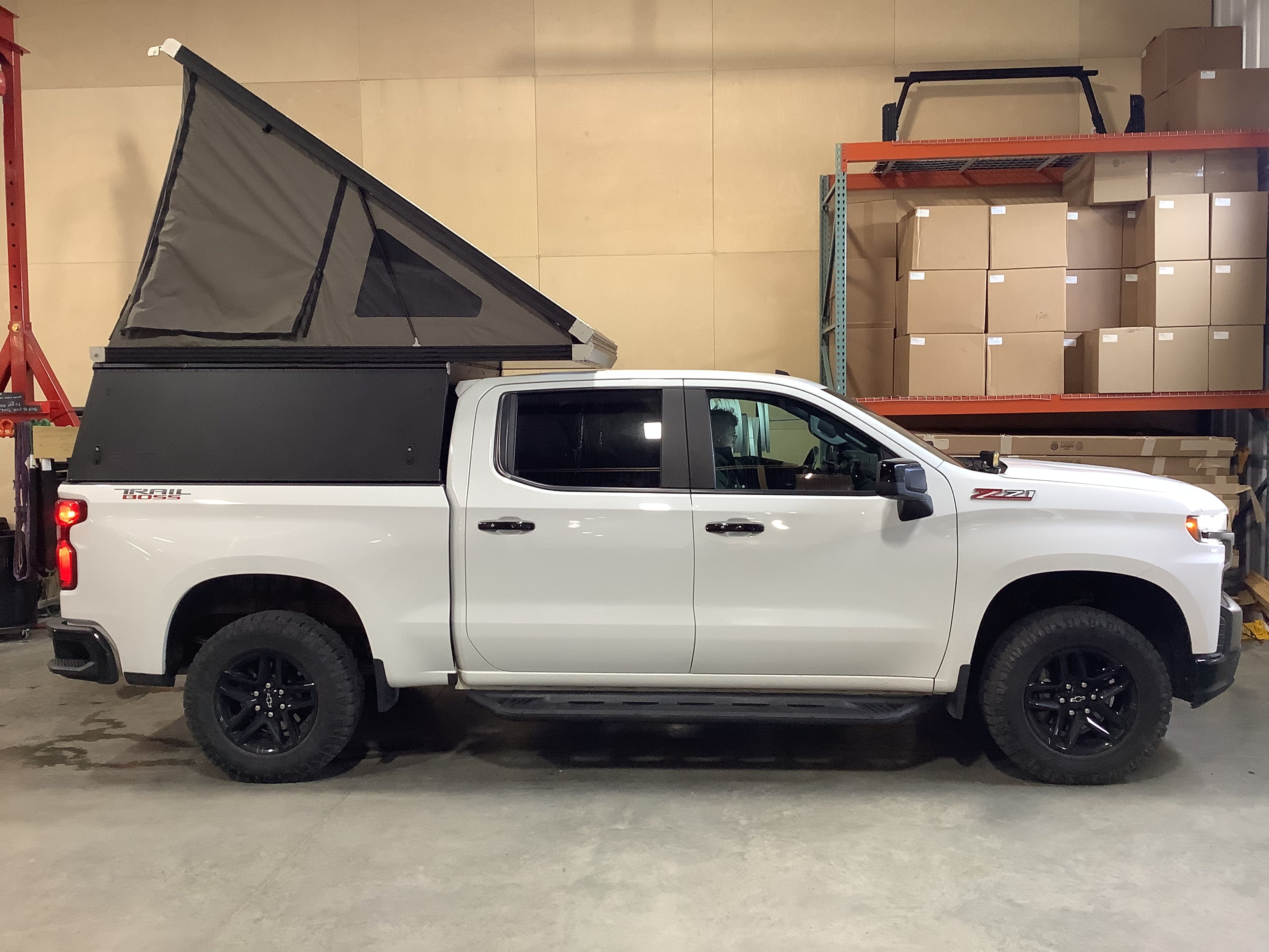 This 2019 Chevrolet Silverado is outfitted with a GFC Platform Camper with Black panels. Check out more build specs below.