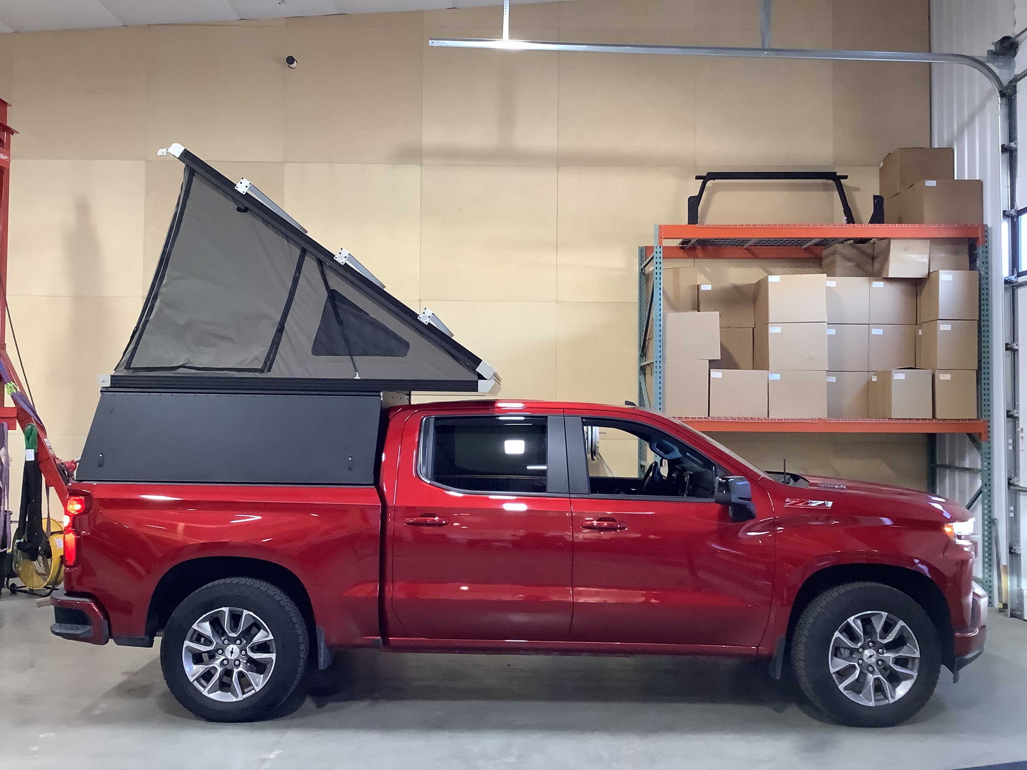 Product: Platform Camper Panel Color: Black GFC Options: Windows, Side Door, Beef Rack Year: 2022 Make: Chevrolet Model: Silverado Cab/Bed: Crew Cab 5 foot Truck Color Red Wheels: Stock Suspension: Stock Tire: Goodyear Wrangler 275/60/R20 Mods: All I need is a GFC Instagram Handle:@Nolz3232 Install Date: 2022-08-20 Location: FL