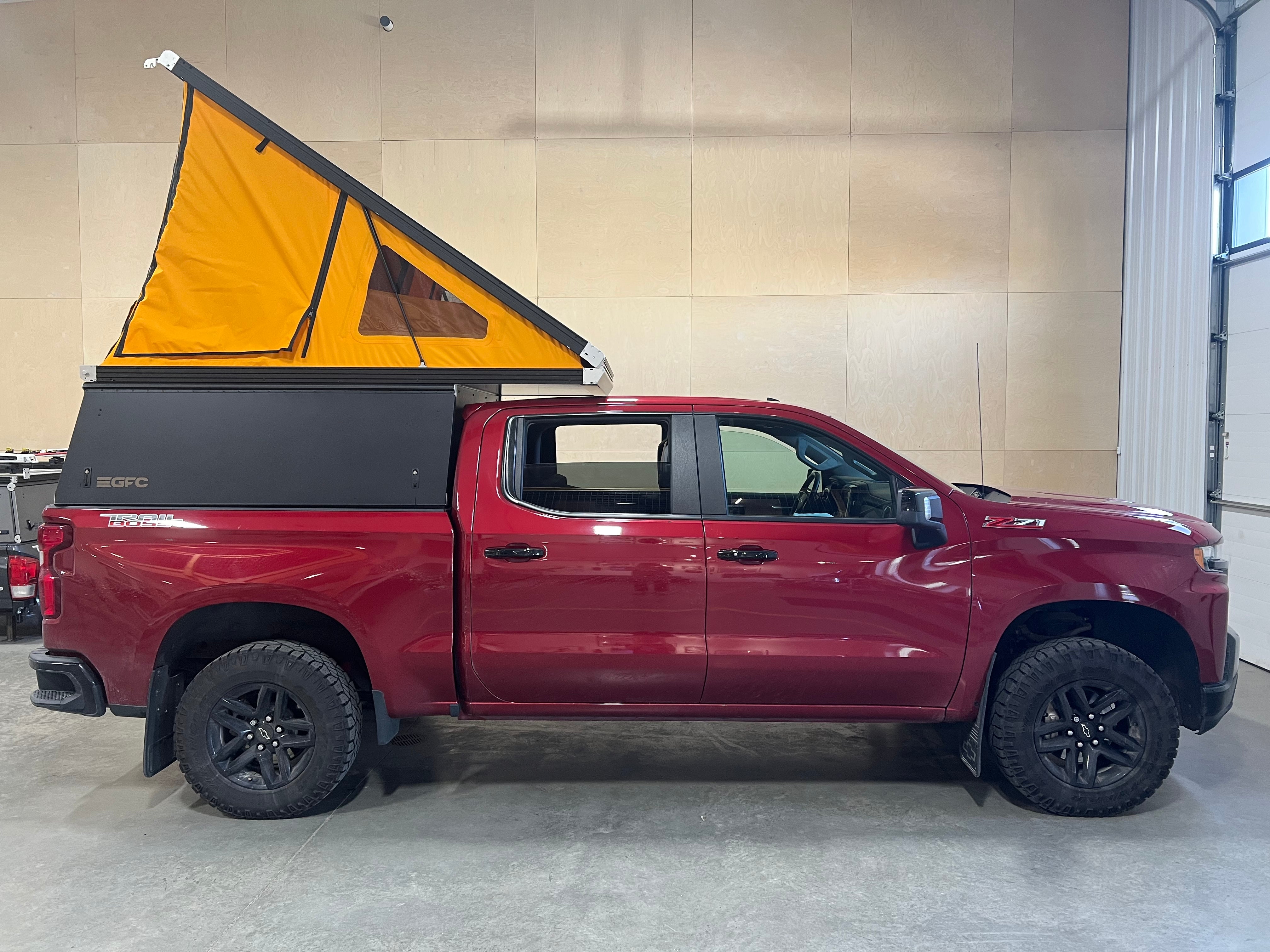 This 2020 Chevrolet Silverado is outfitted with a GFC Platform Camper with Black panels. Check out more build specs below.