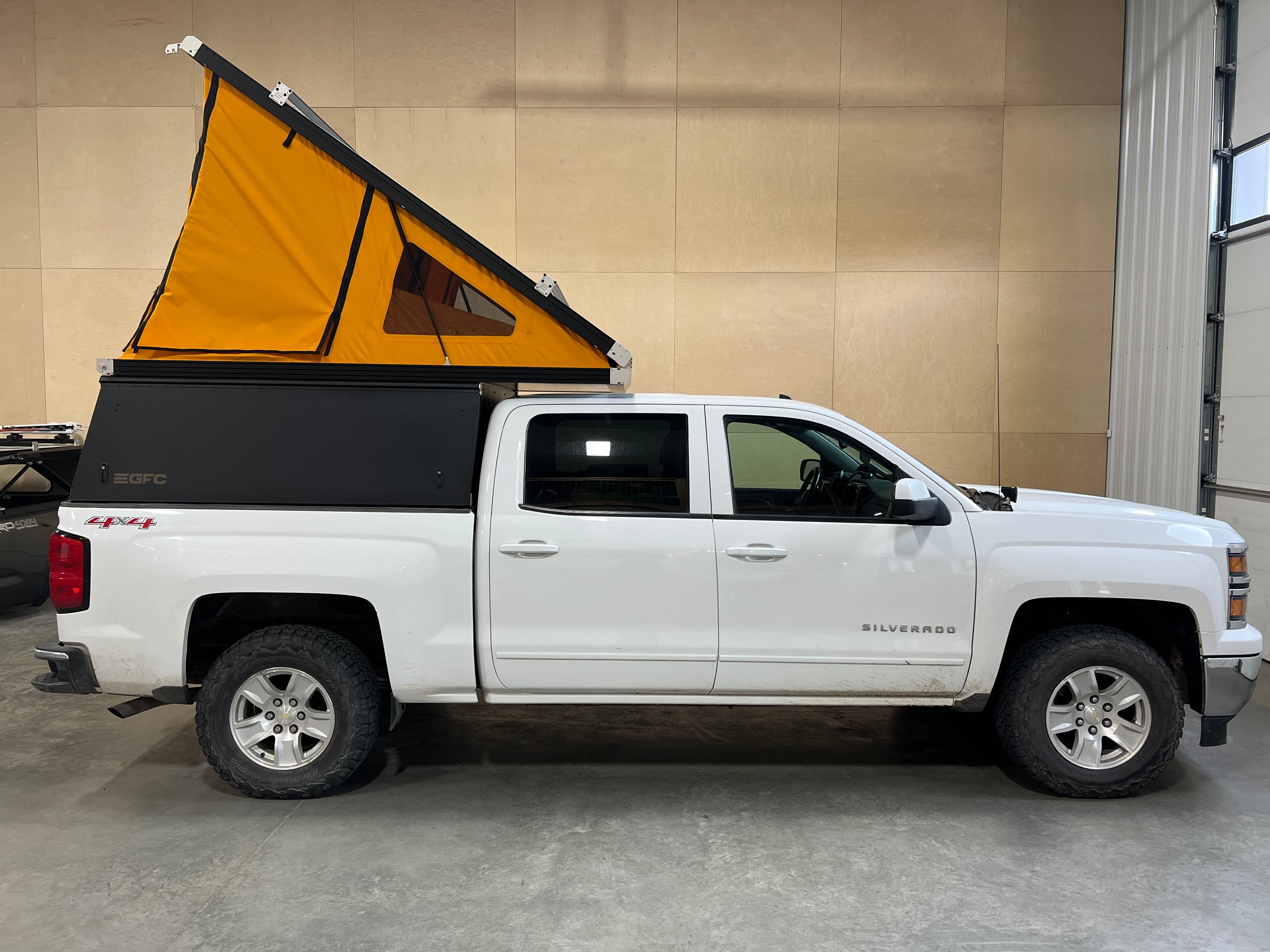 This 2015 Chevrolet Silverado is outfitted with a GFC Platform Camper with Black panels. Check out more build specs below.