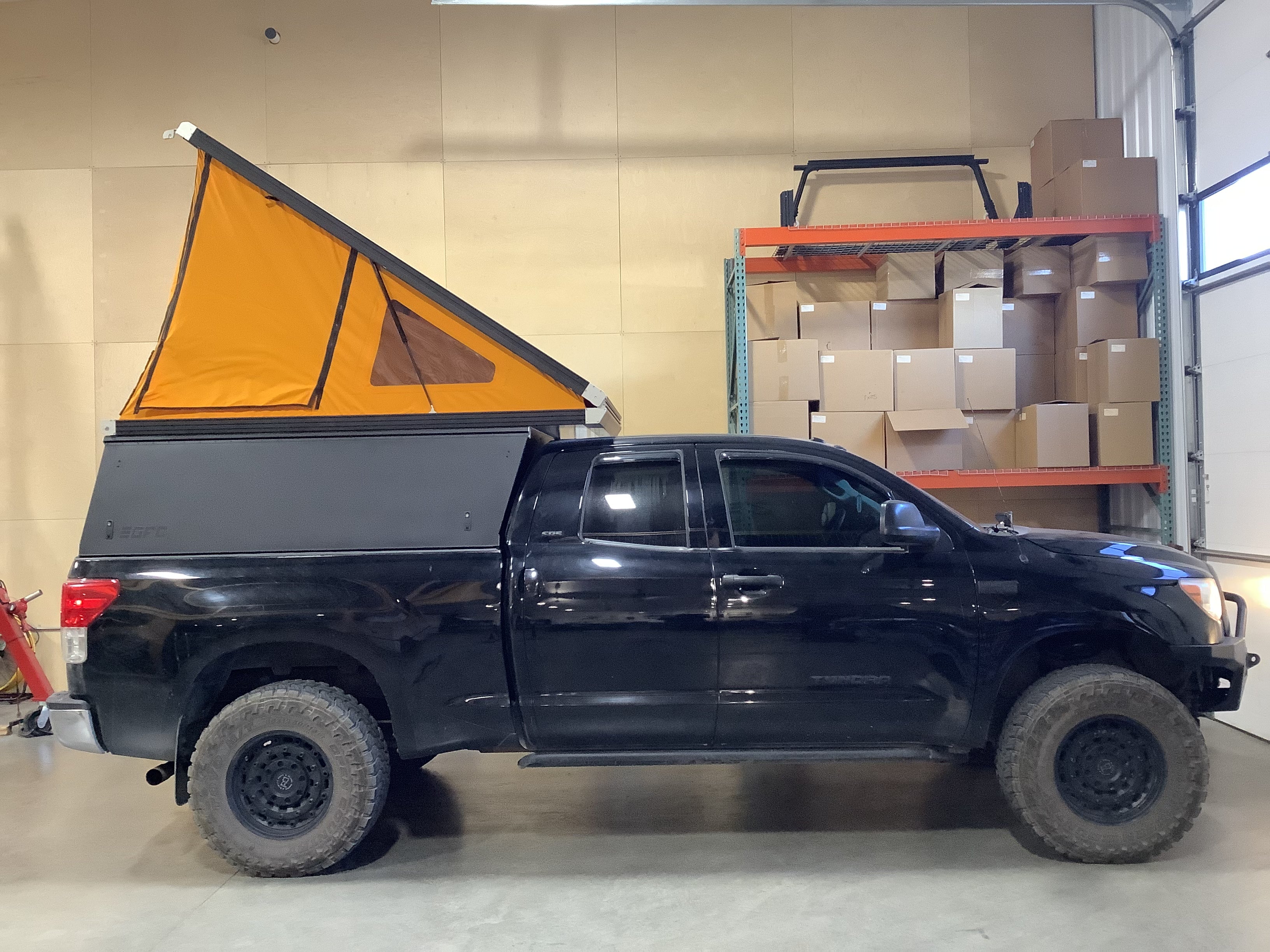 This 2011 Toyota Tundra is outfitted with a GFC Platform Camper with Black panels. Check out more build specs below.