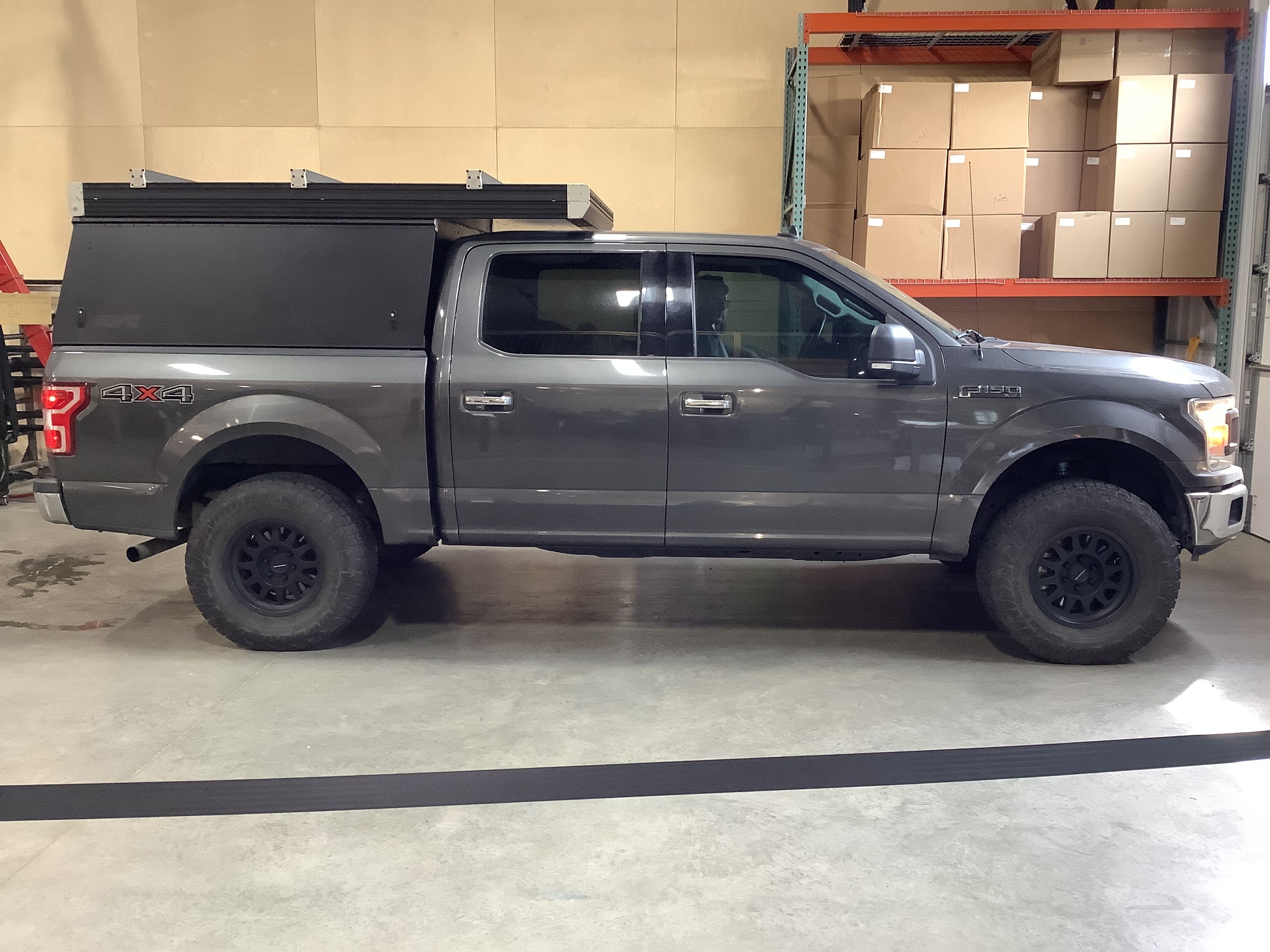 Product: Platform Camper Panel Color: Black GFC Options: Beef Rack Year: 2019 Make: Ford Model: F150 Cab/Bed: Double Cab 5 foot Truck Color Gray Wheels: Method Suspension: King Tire: Toyo Open Country 305/70/R17 Mods: All I need is a GFC Instagram Handle: Install Date: 2022-05-27 Location: California
