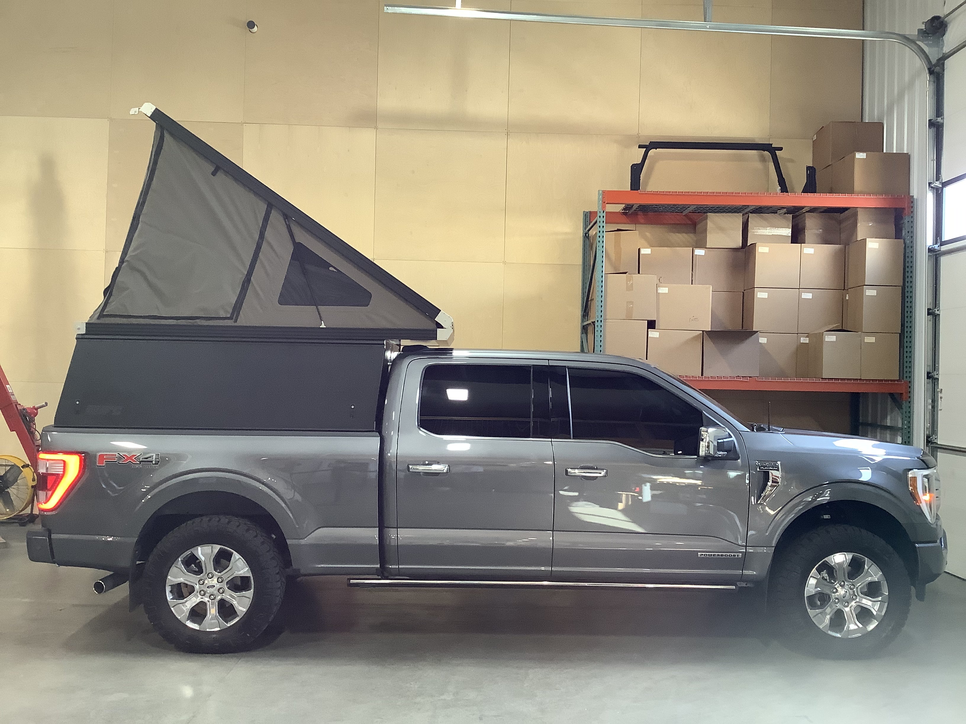 This 2022 Ford F150 is outfitted with a GFC Platform Camper with Black panels. Check out more build specs below.