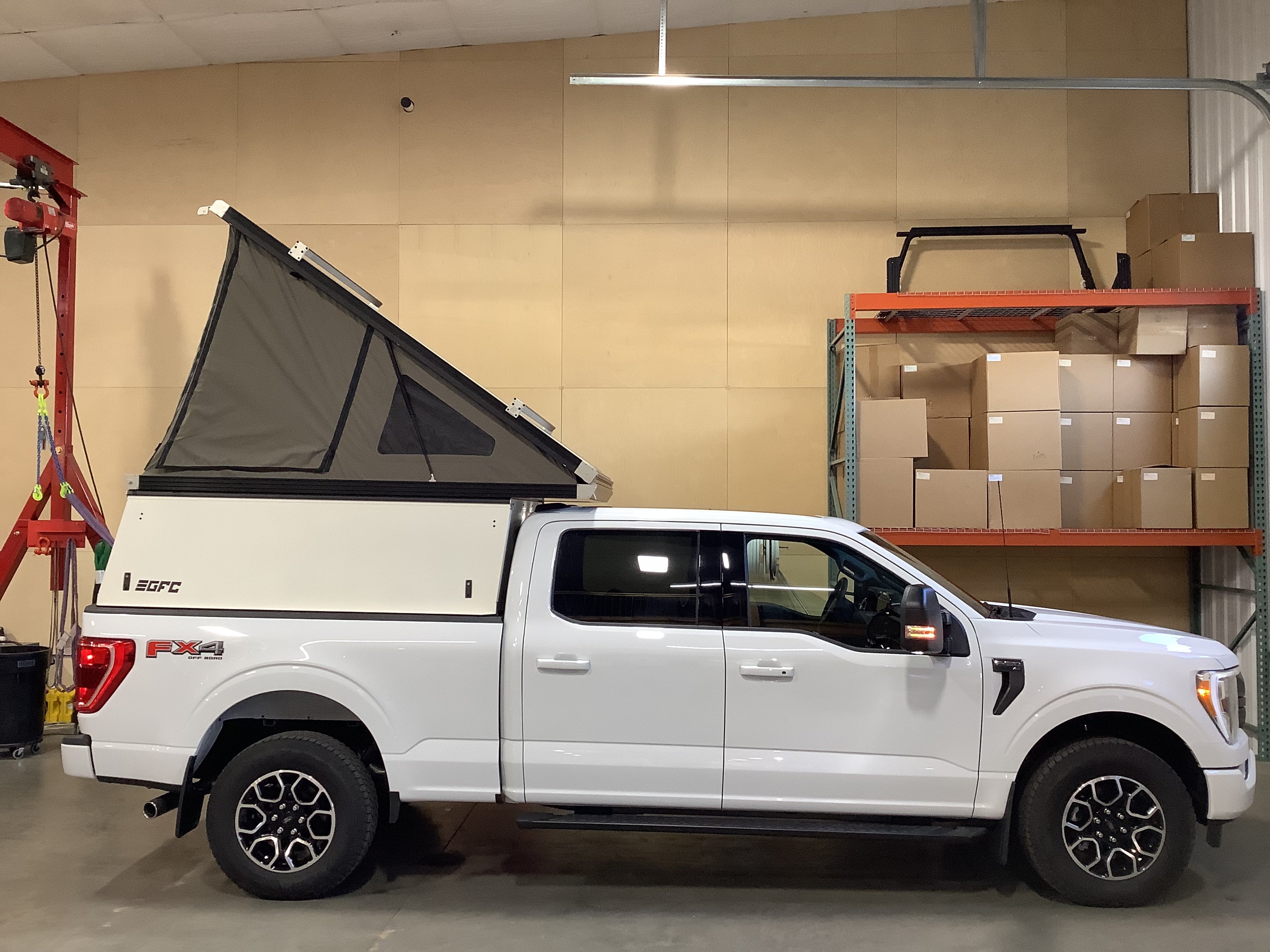 This 2022 Ford F150 is outfitted with a GFC Platform Camper with White panels. Check out more build specs below.
