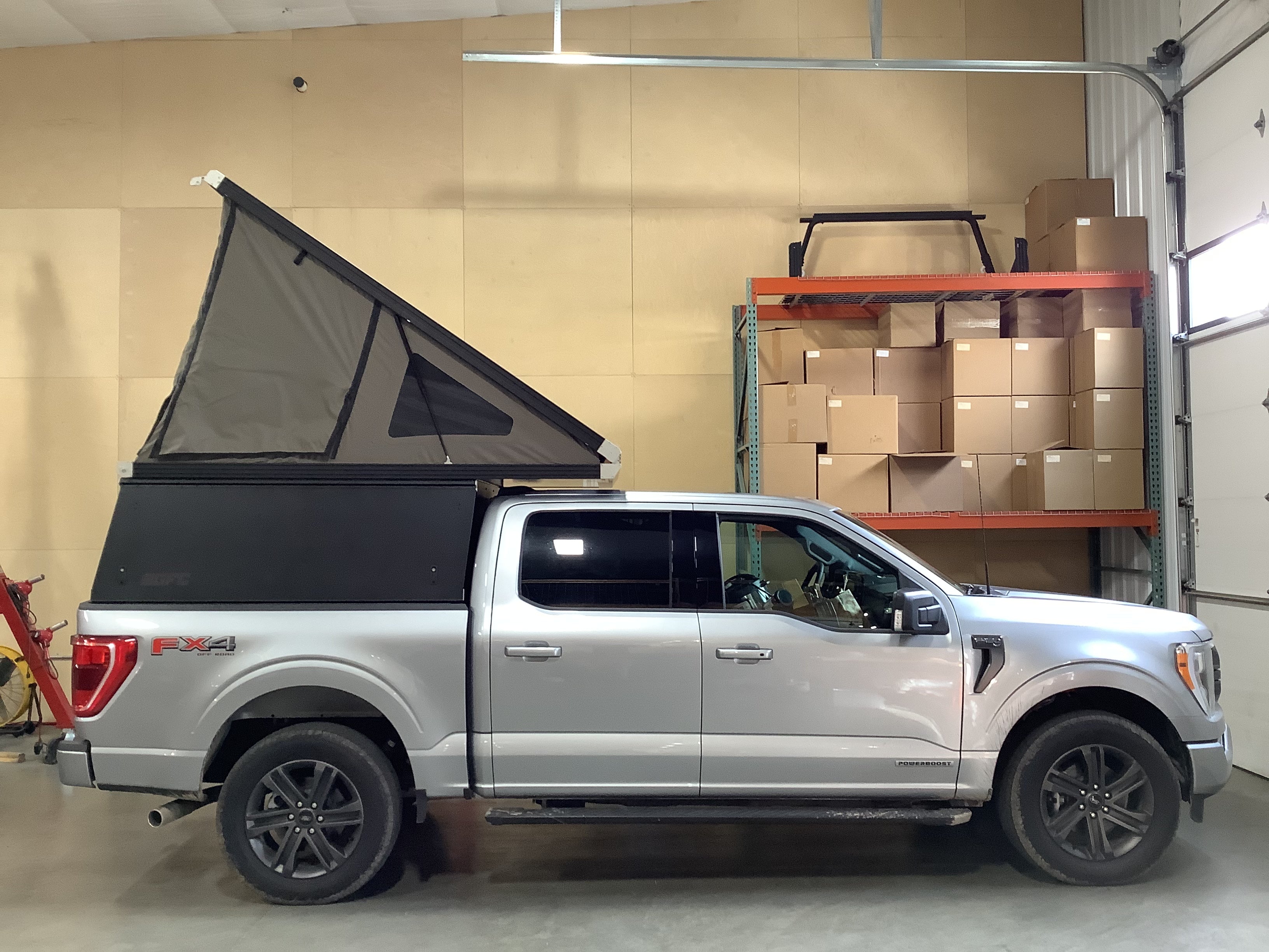 Product: Platform Camper Panel Color: Black GFC Options: Windows, Side Door Year: 2022 Make: Ford Model: F150 Cab/Bed: Crew Cab 5 foot Truck Color Silver Wheels: Stock Suspension: Stock Tire: Hankook Dynapro 275/60/R20 Mods: All I need is a GFC Instagram Handle: Install Date: 2022-08-27 Location: NH