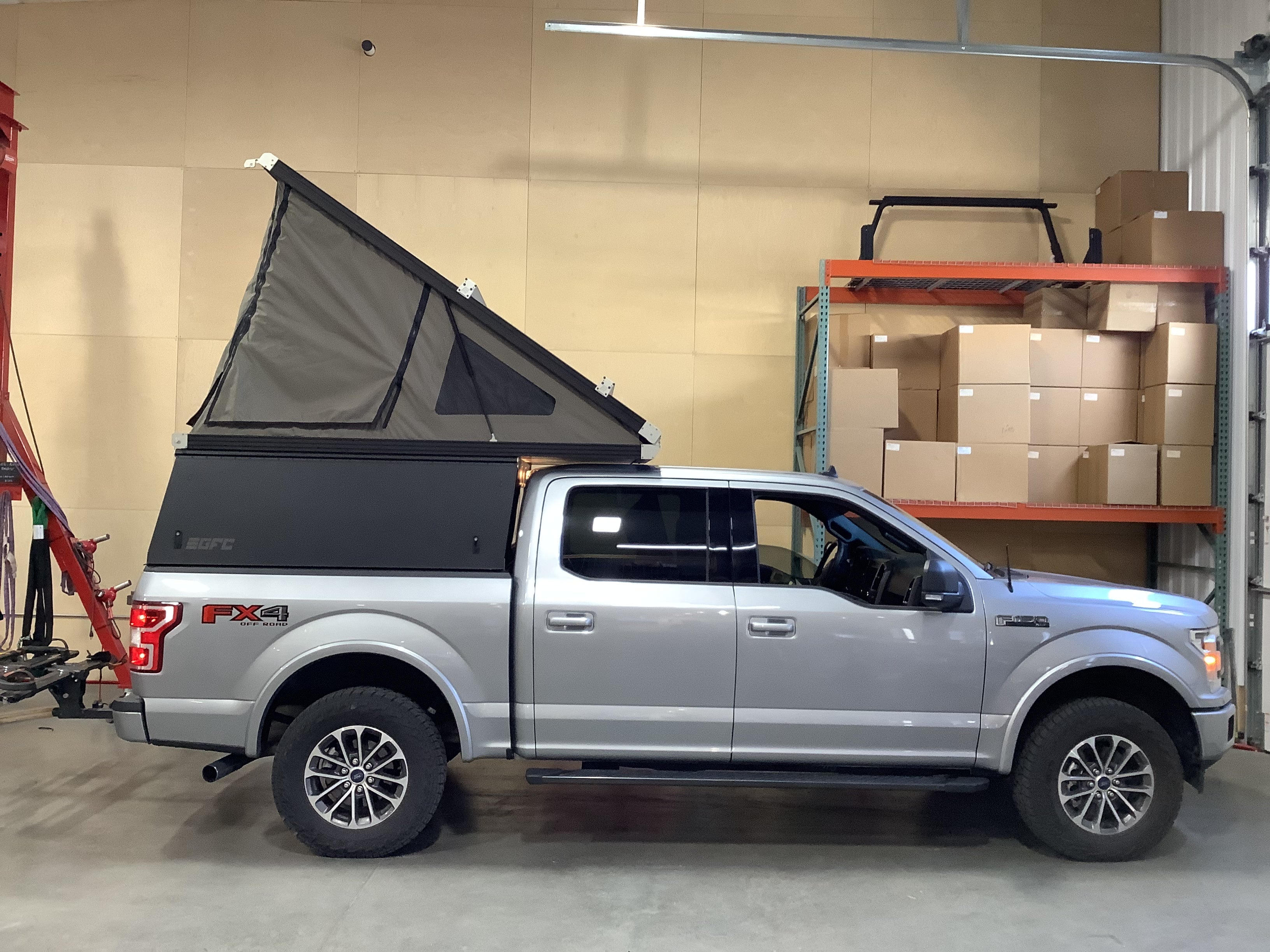 Product: Platform Camper Panel Color: Black GFC Options: Windows, Side Door, Beef Rack Year: 2020 Make: Ford Model: F150 Cab/Bed: Double Cab 5 foot Truck Color Silver Wheels: Stock Suspension: Stock Tire: Falken Wildpeak 265/70/R18 Mods: All I need is a GFC Instagram Handle: Install Date: 2022-08-21 Location: CO