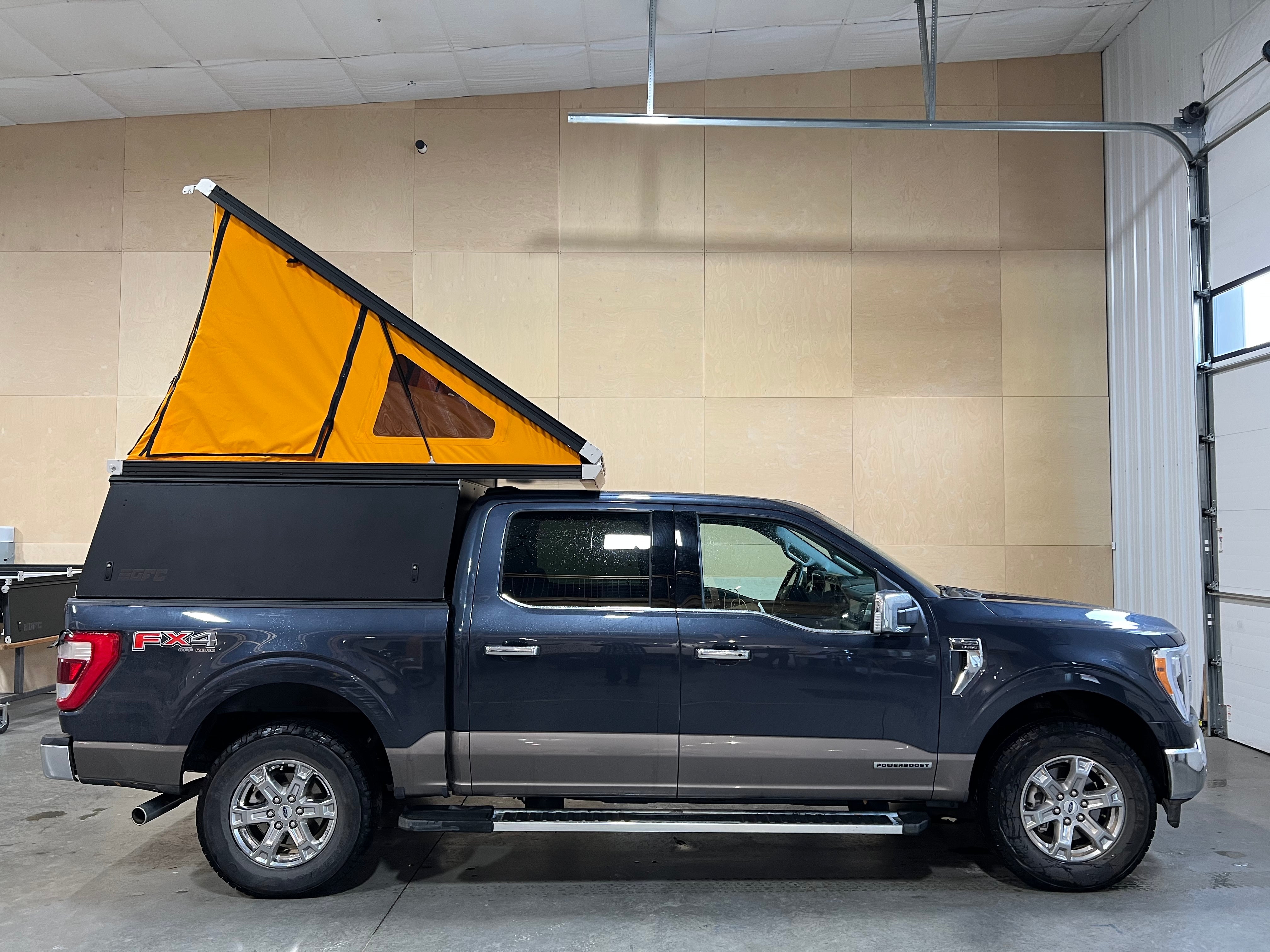 This 2022 Ford F150 is outfitted with a GFC Platform Camper with Black panels. Check out more build specs below.
