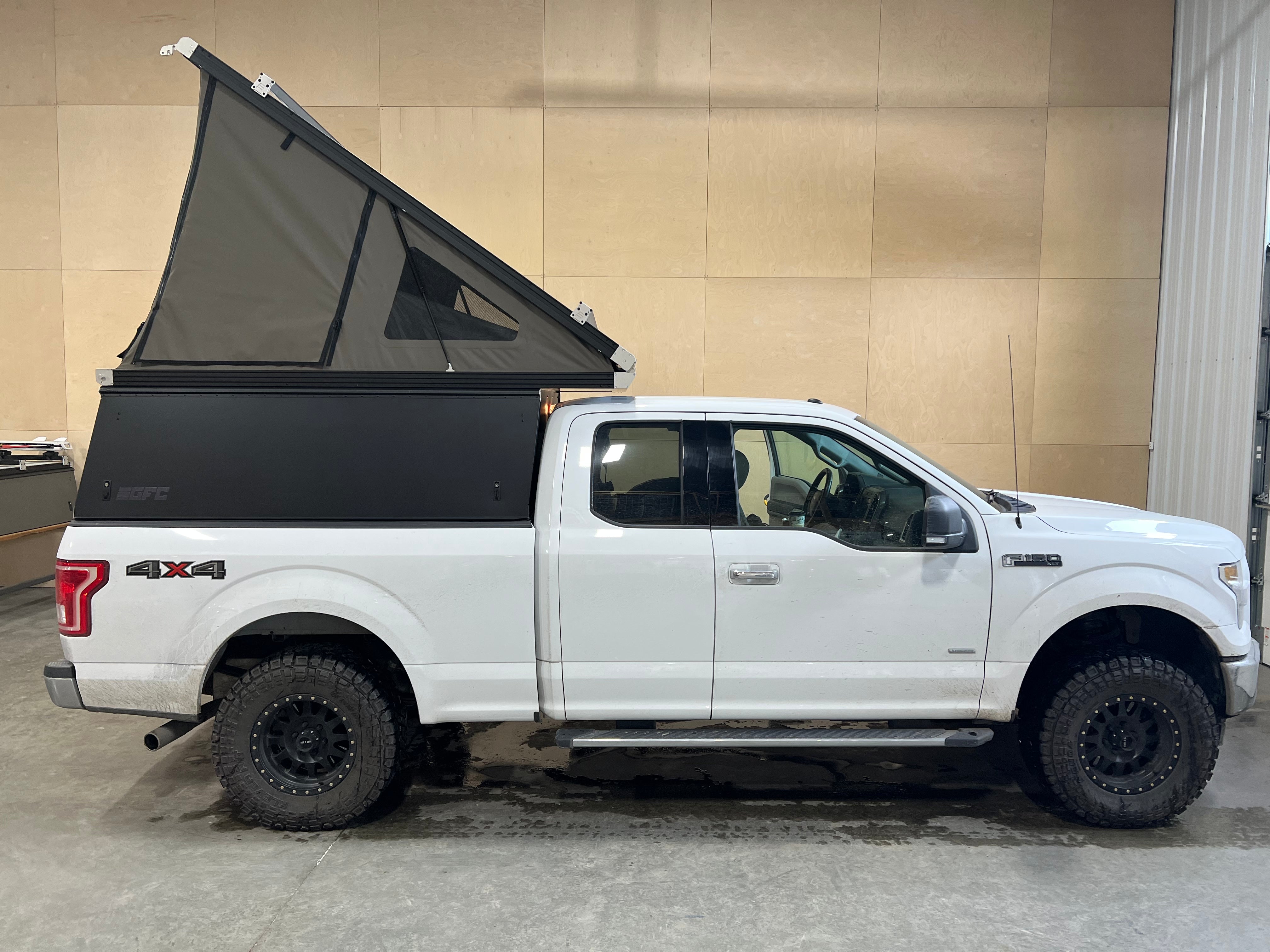 Product: Platform Camper Panel Color: Black GFC Options: Beef Rack, Windows, Side Door Year: 2017 Make: Ford Model: F150 Cab/Bed: Access Cab 6 Foot Truck Color White Wheels: Method Suspension: Stock Tire: Kenda Kevler 33/12.5/r17 Mods: All I need is a GFC Instagram Handle: Install Date: 2022-12-11 Location: California