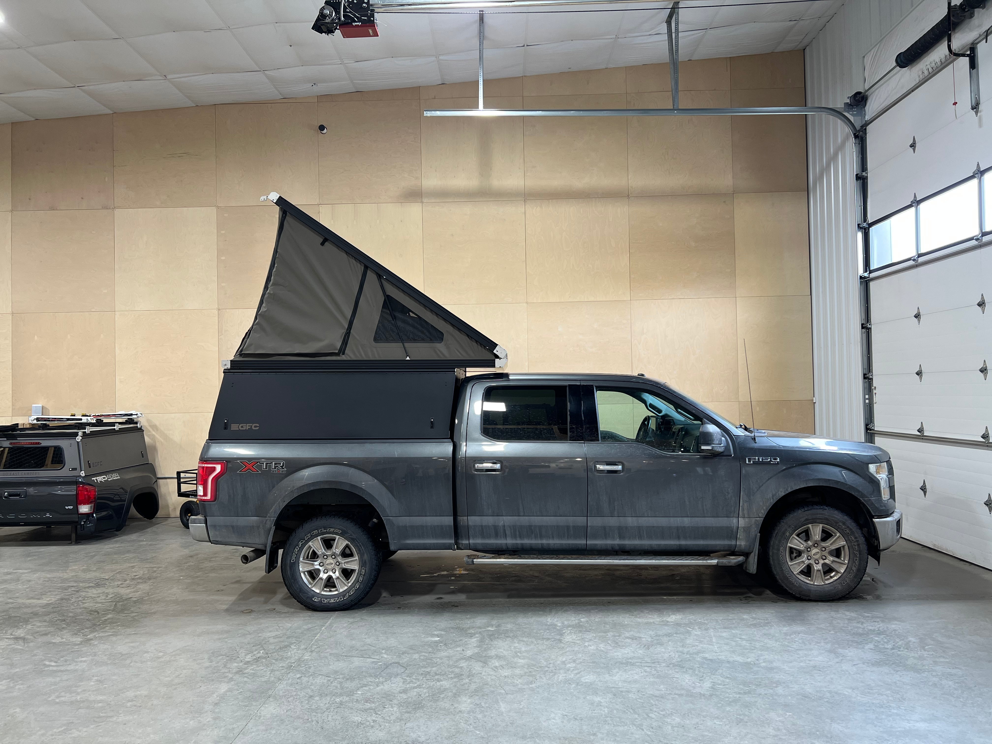 This 2016 Ford F150 is outfitted with a GFC Platform Camper with Black panels. Check out more build specs below.